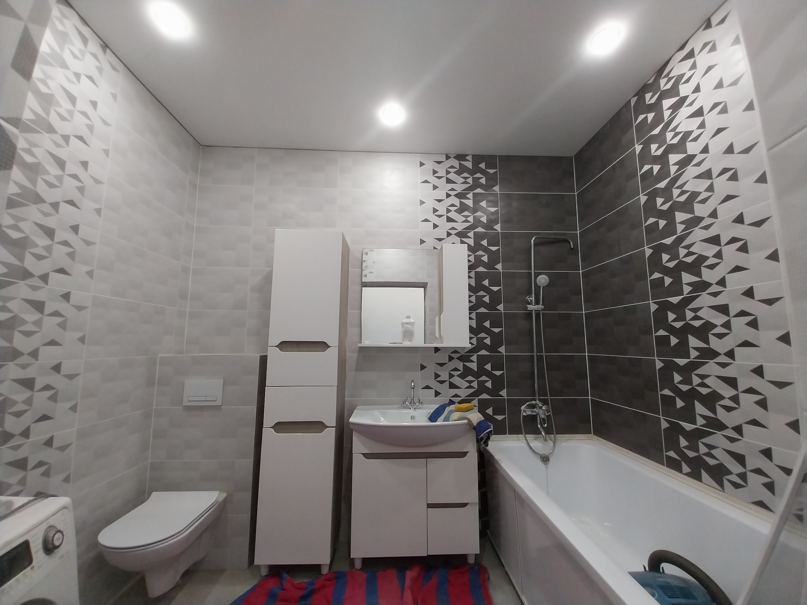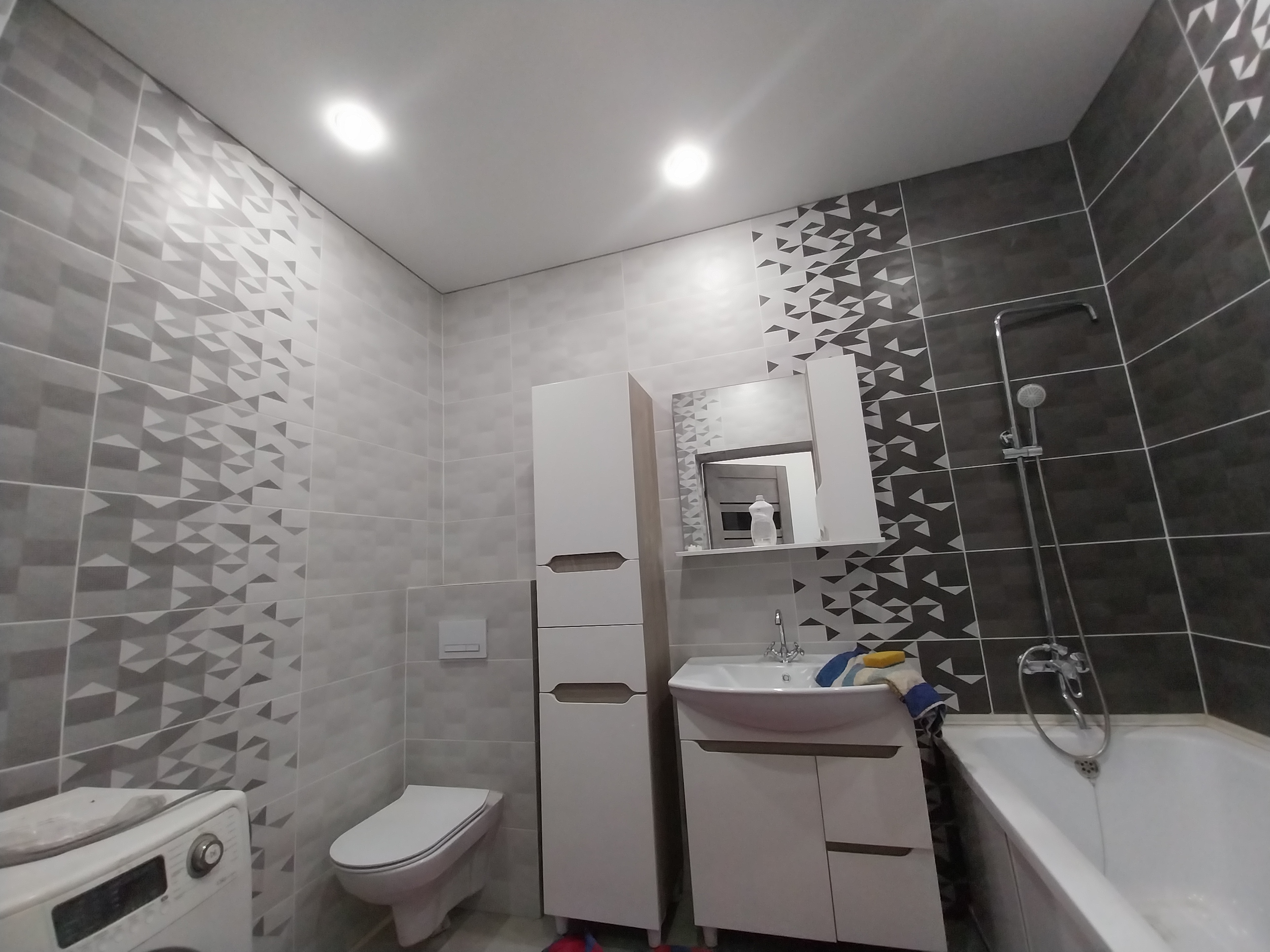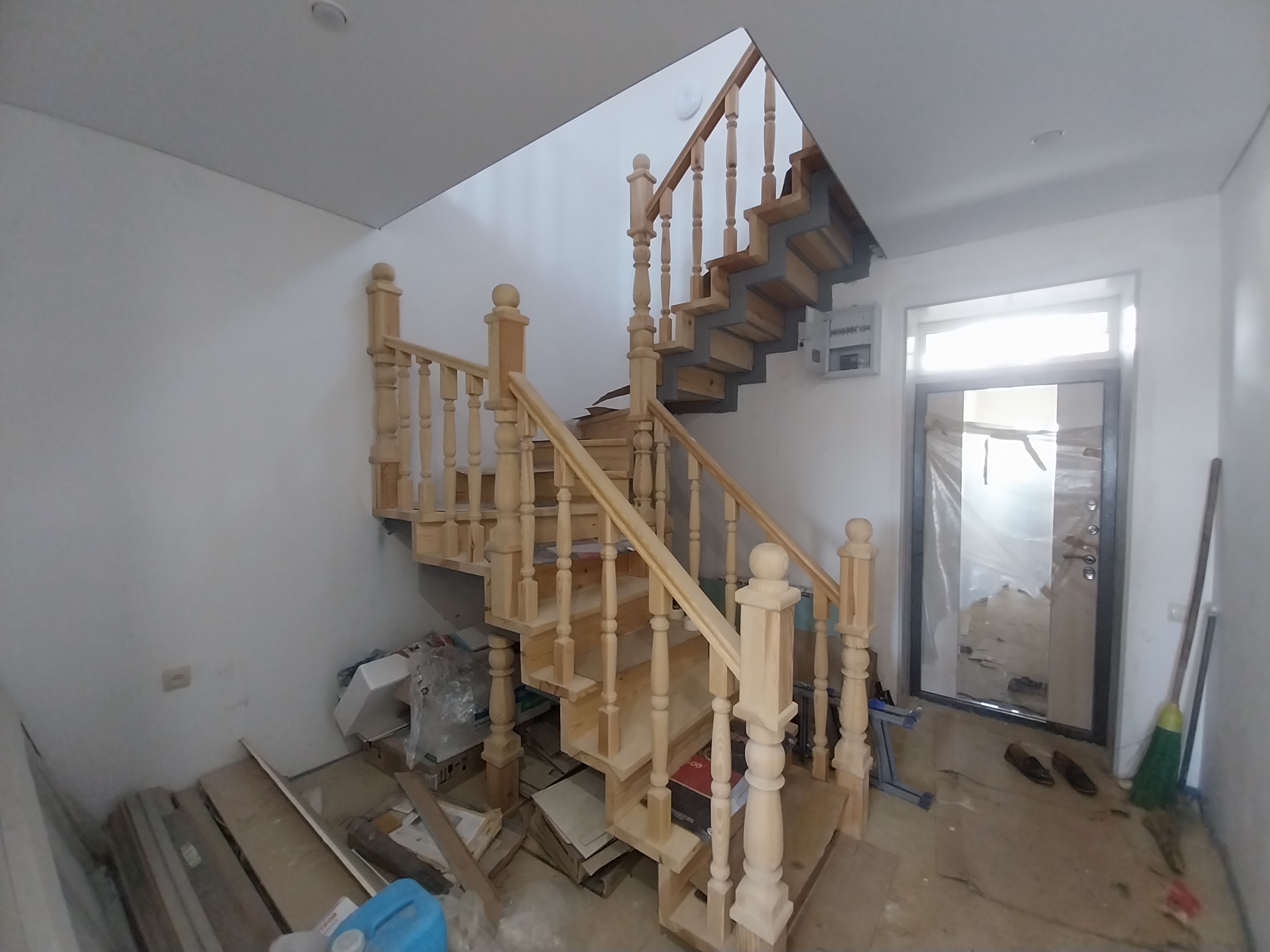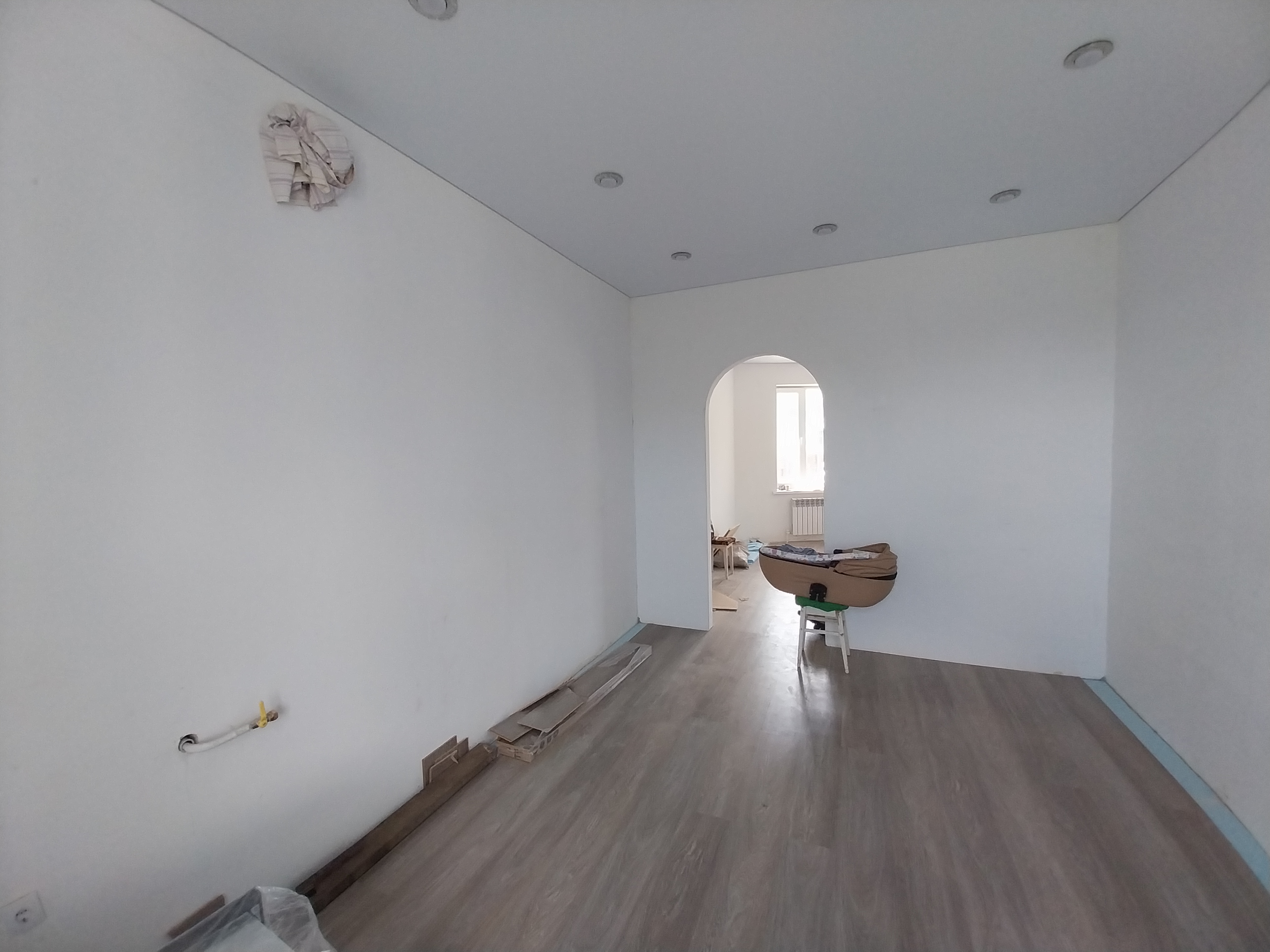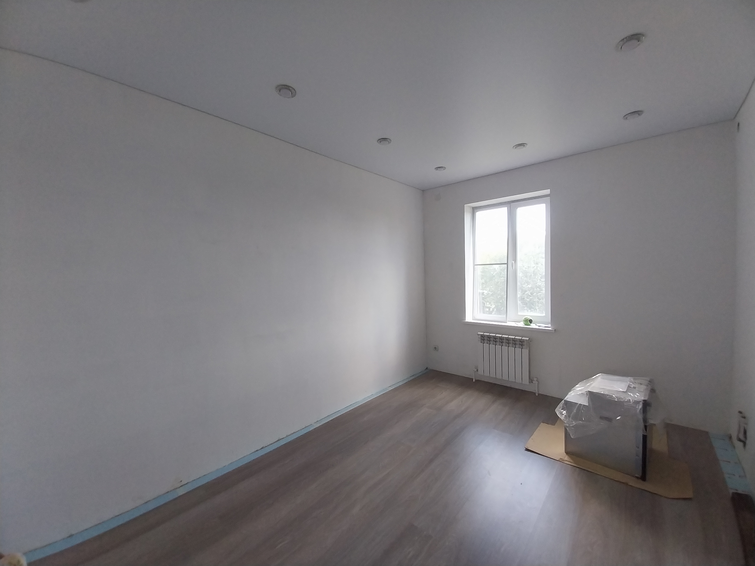 Дом готов к чистовой отделке. На первом этаже на полу ламинат, натяжные потолки во всем доме. Санузел совмещен, в кафеле.