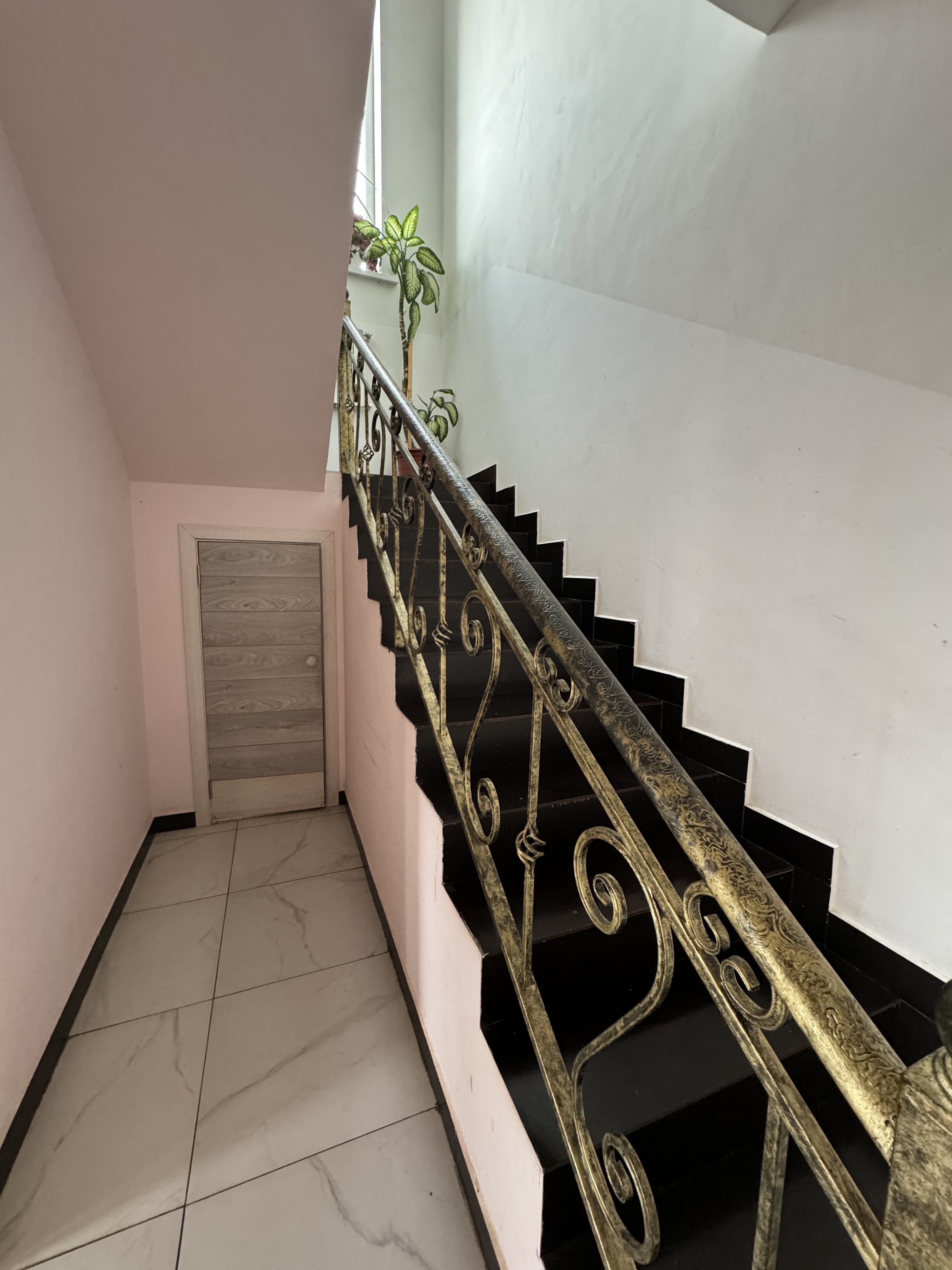 1 этаж : тамбур, санузел, 2 спальни, большая просторная кухня объединённая с гостиной с выходом на террасу, лестница на 2 этаж выполнена из монолитного бетона с кованными перилами