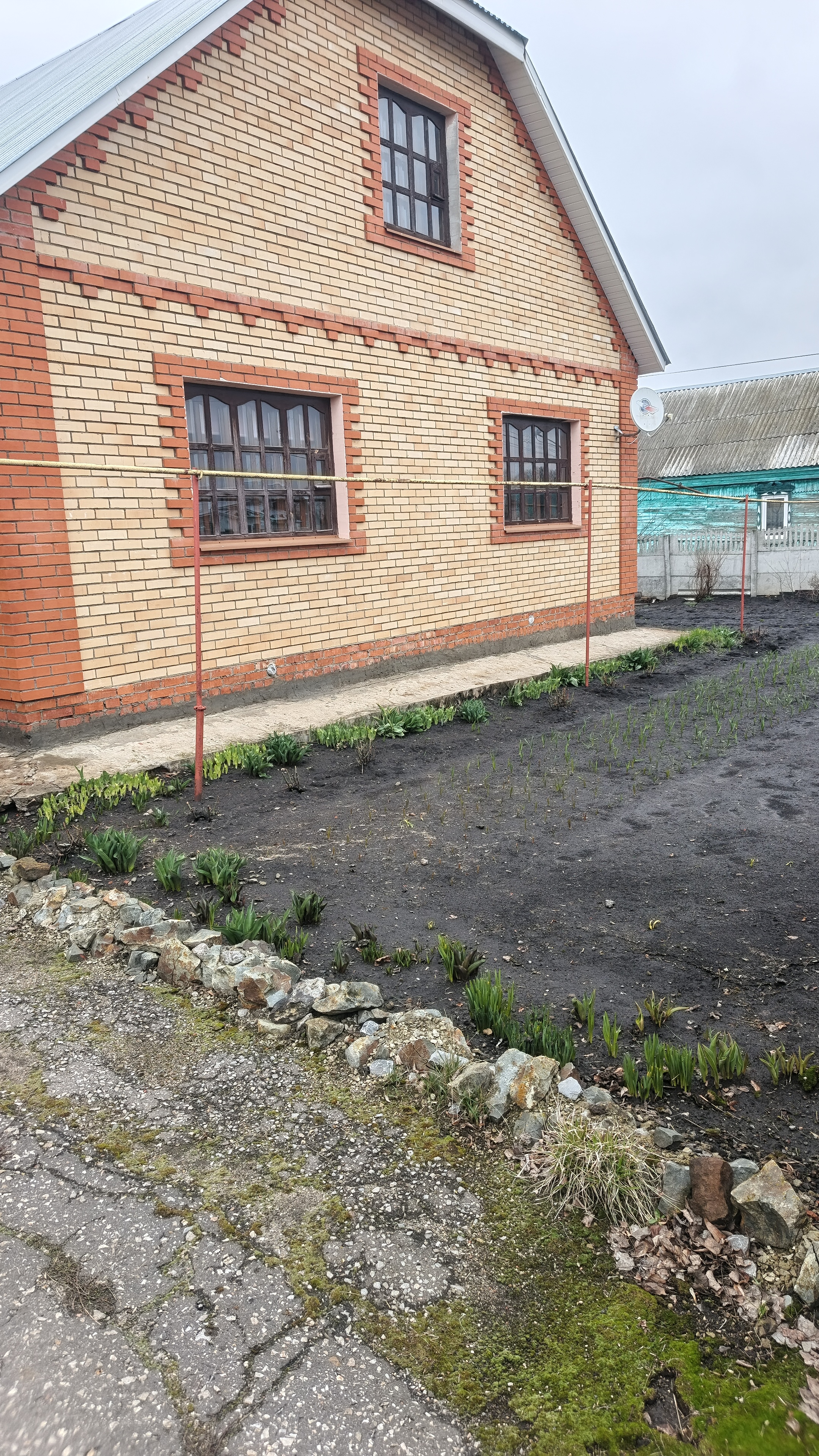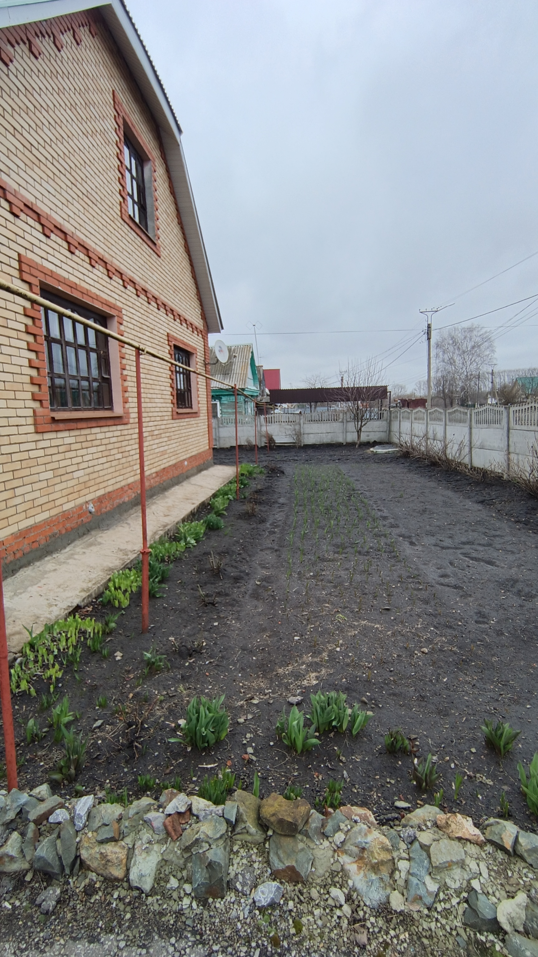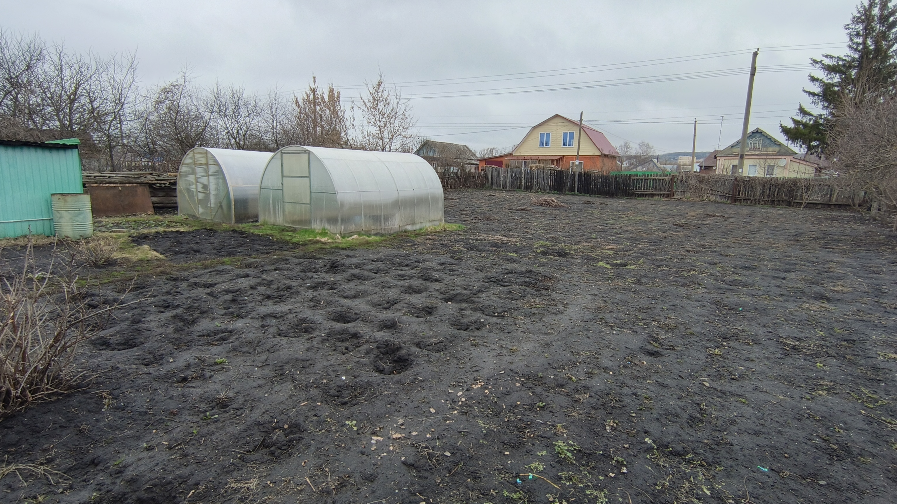 Большой земельный участок в собственности с множеством насаждений, есть две теплицы, садовые деревья, огромное количество цветов, летом очень красиво!