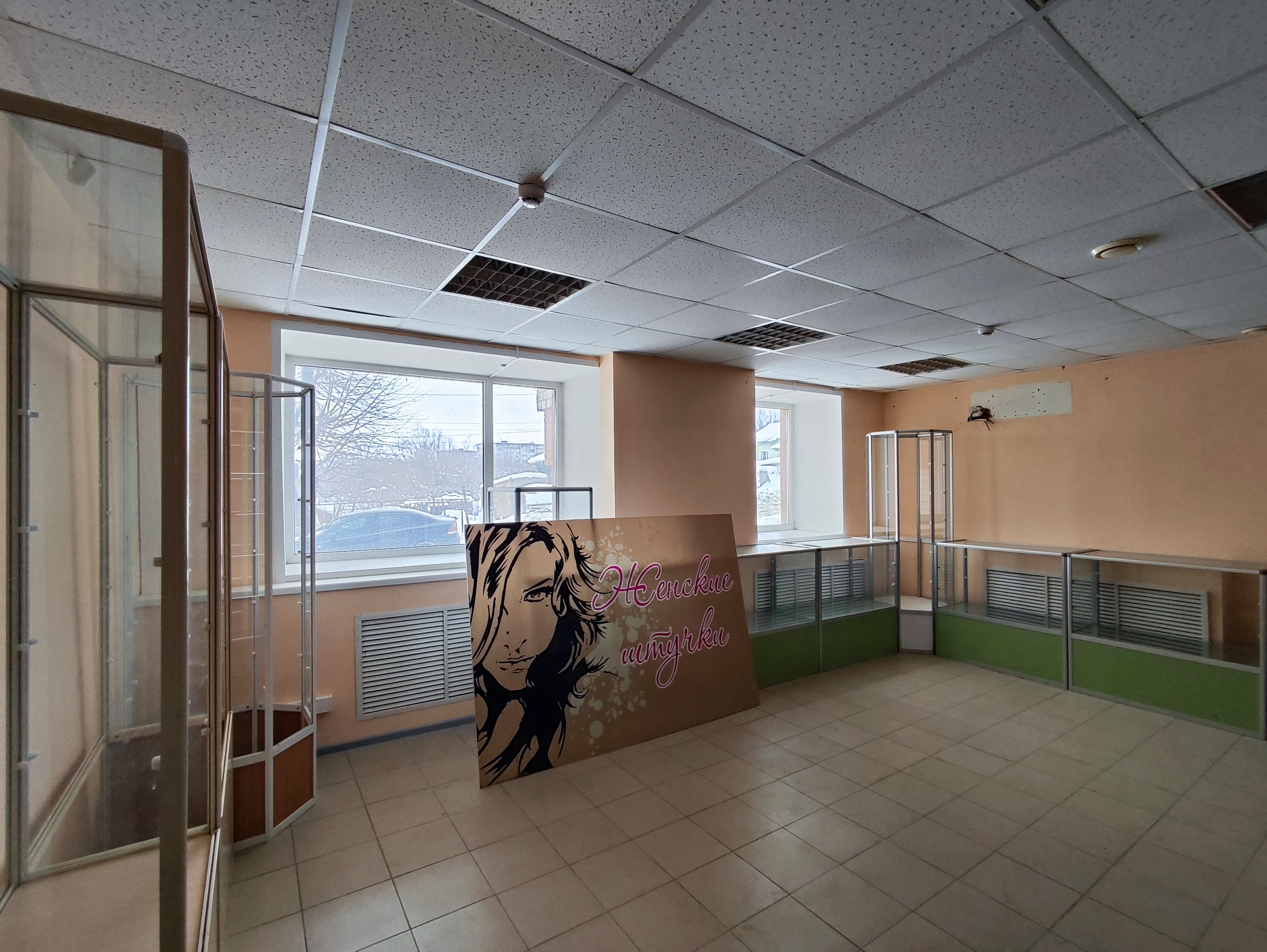 Помещение можно разделить на зоны - торговый зал и склад/мастерская, имеется собственный сан узел