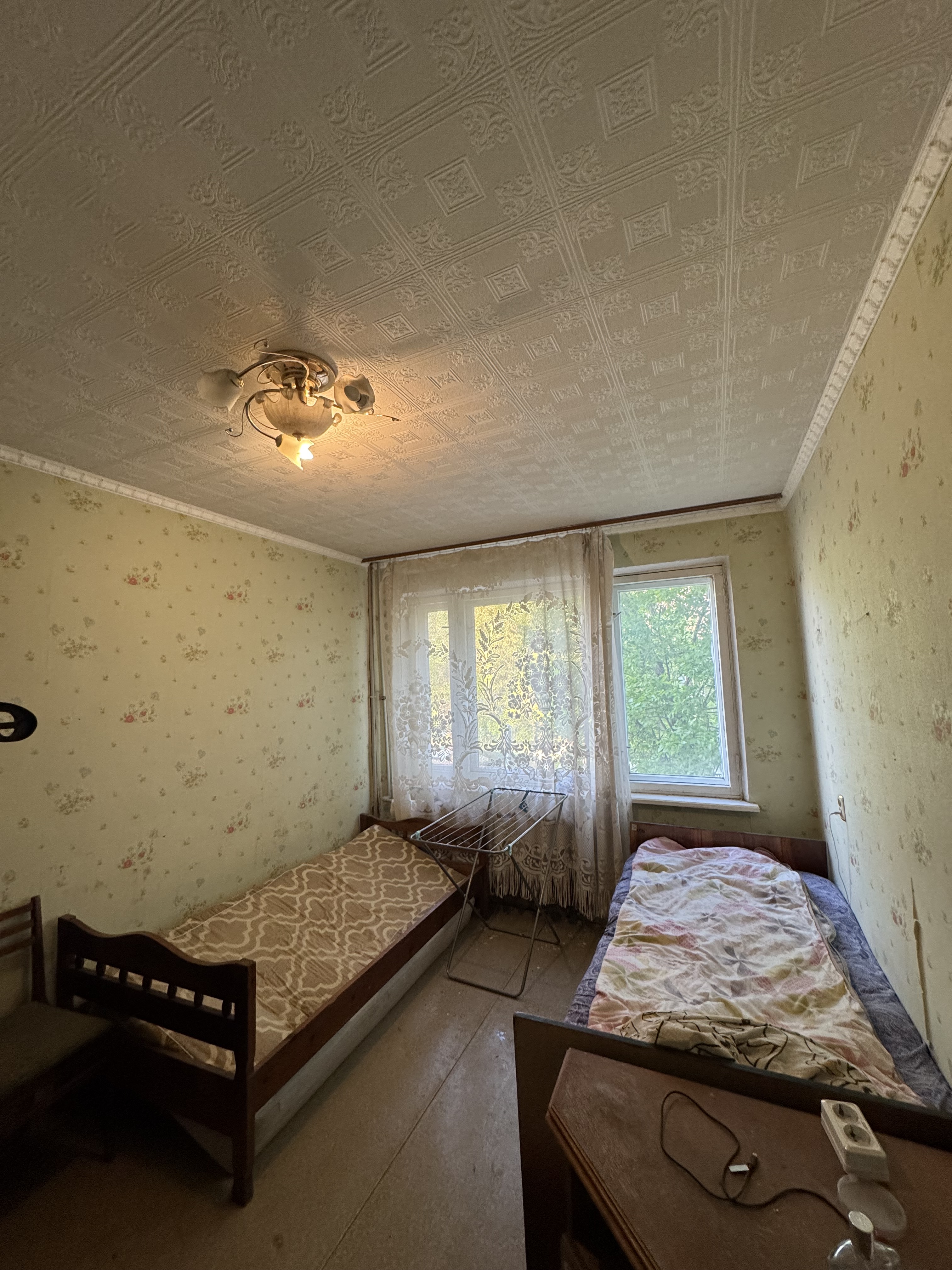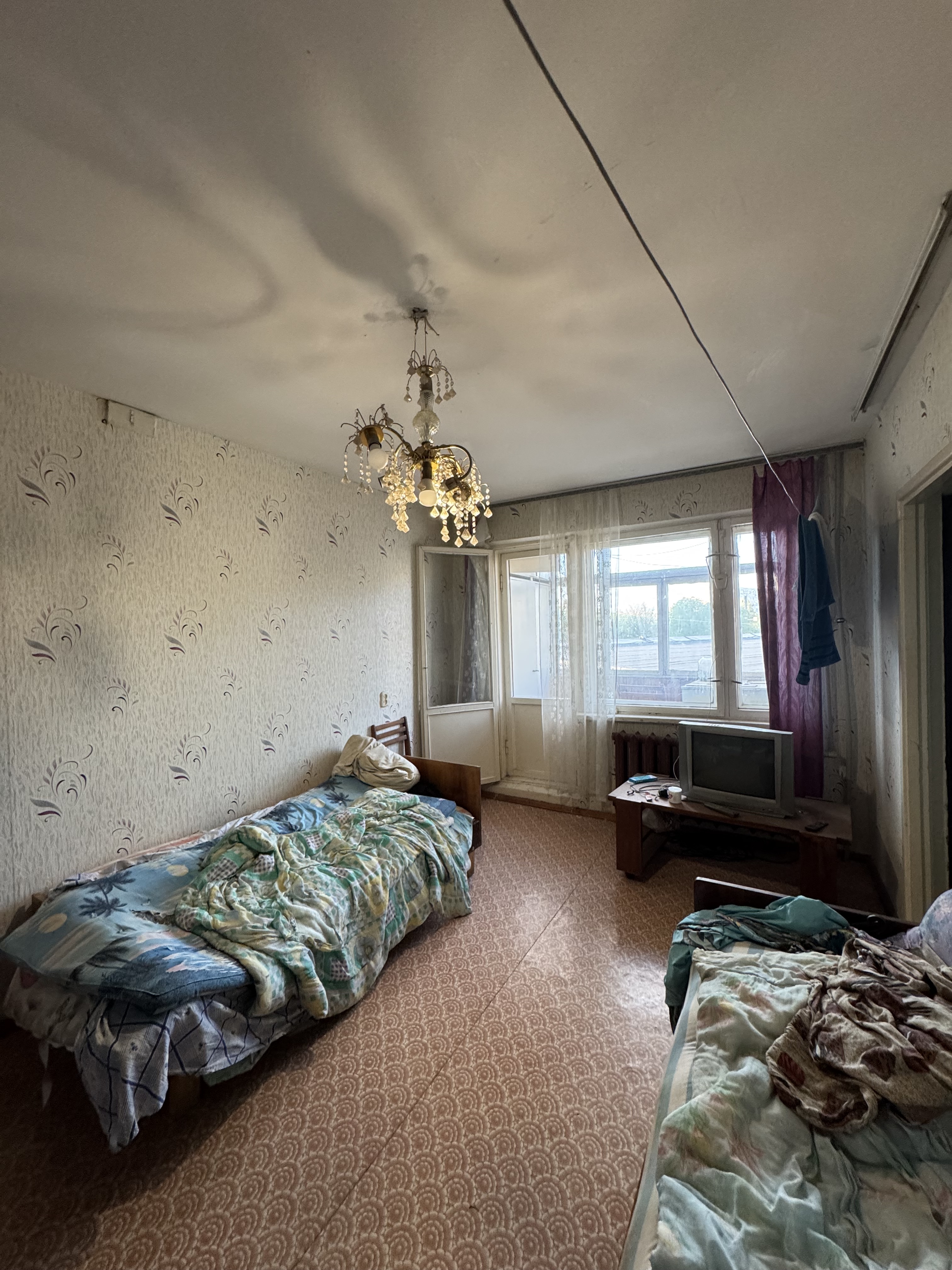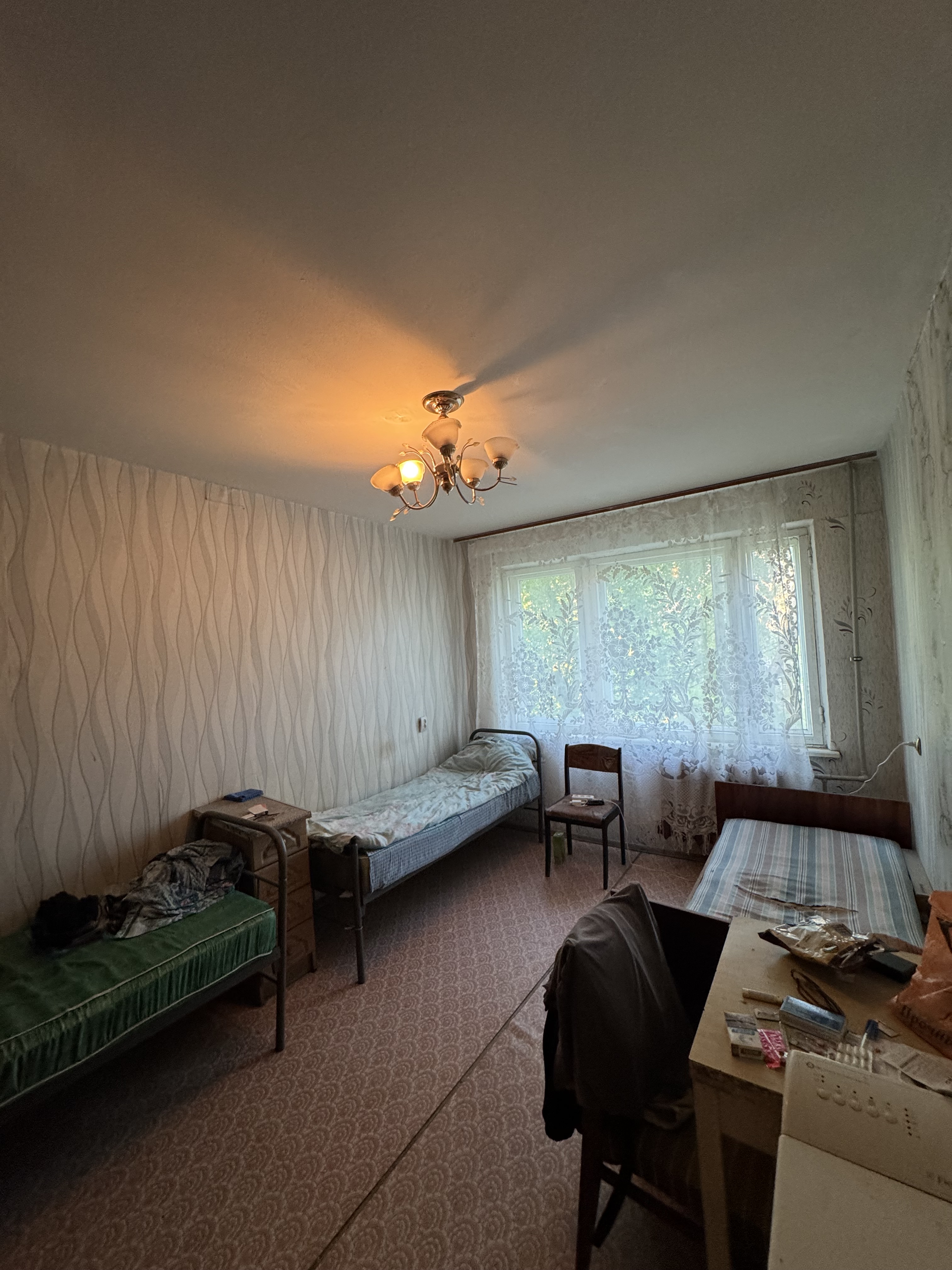 2 комнаты изолированные, одна проходная, имеется лоджия( довольно просторная), санузел раздельный, состояние жилое, но квартира требует вложений