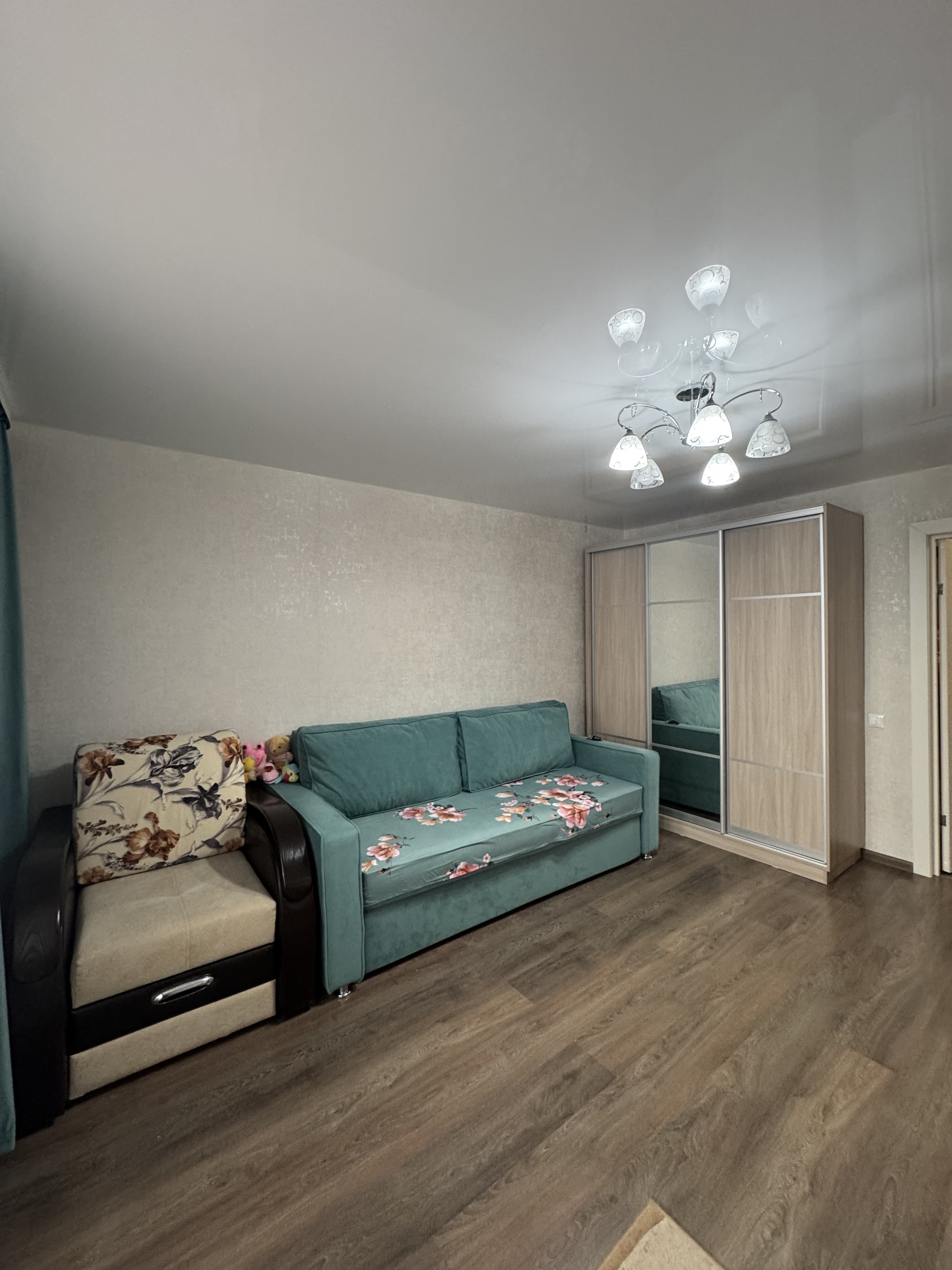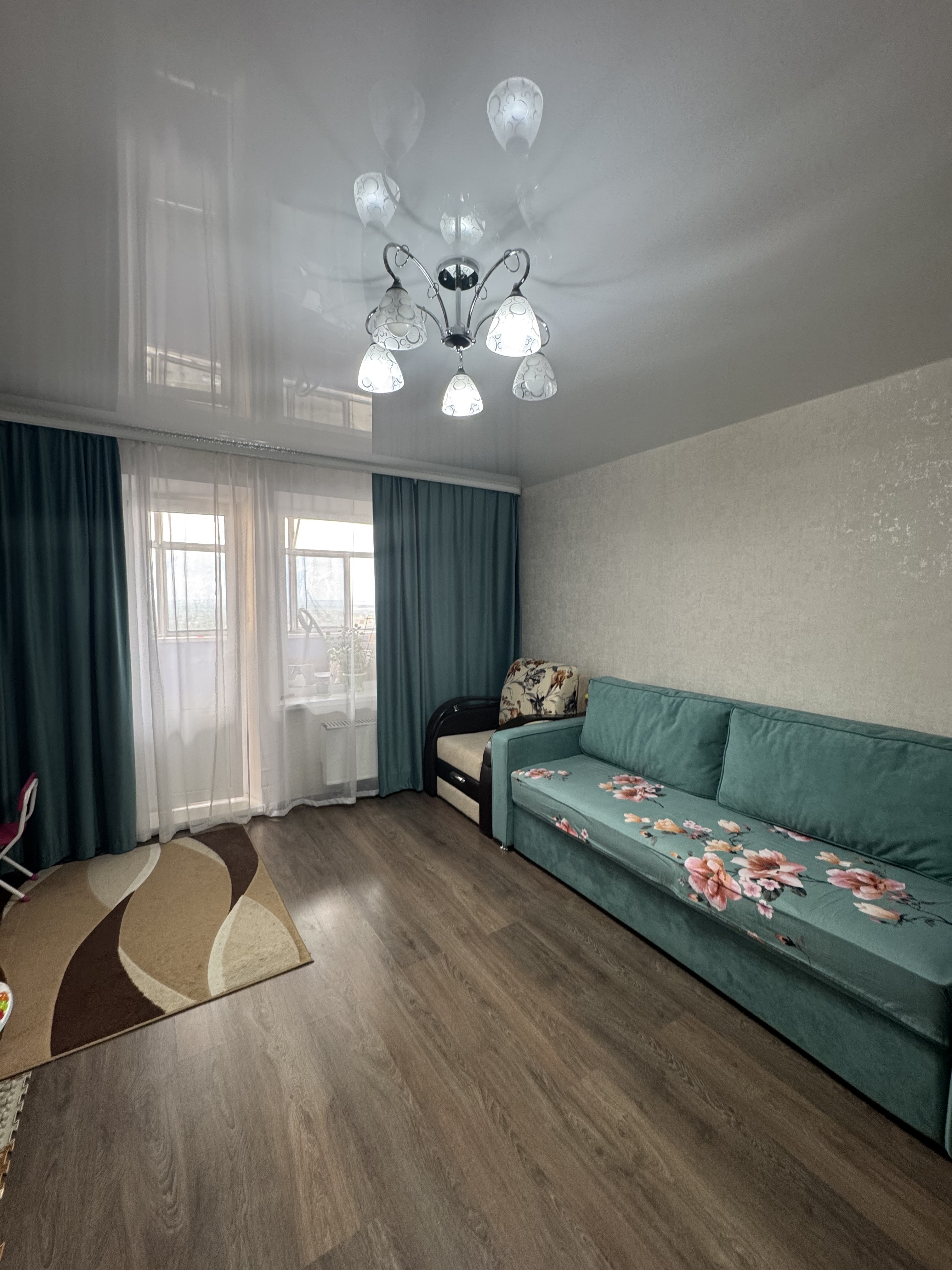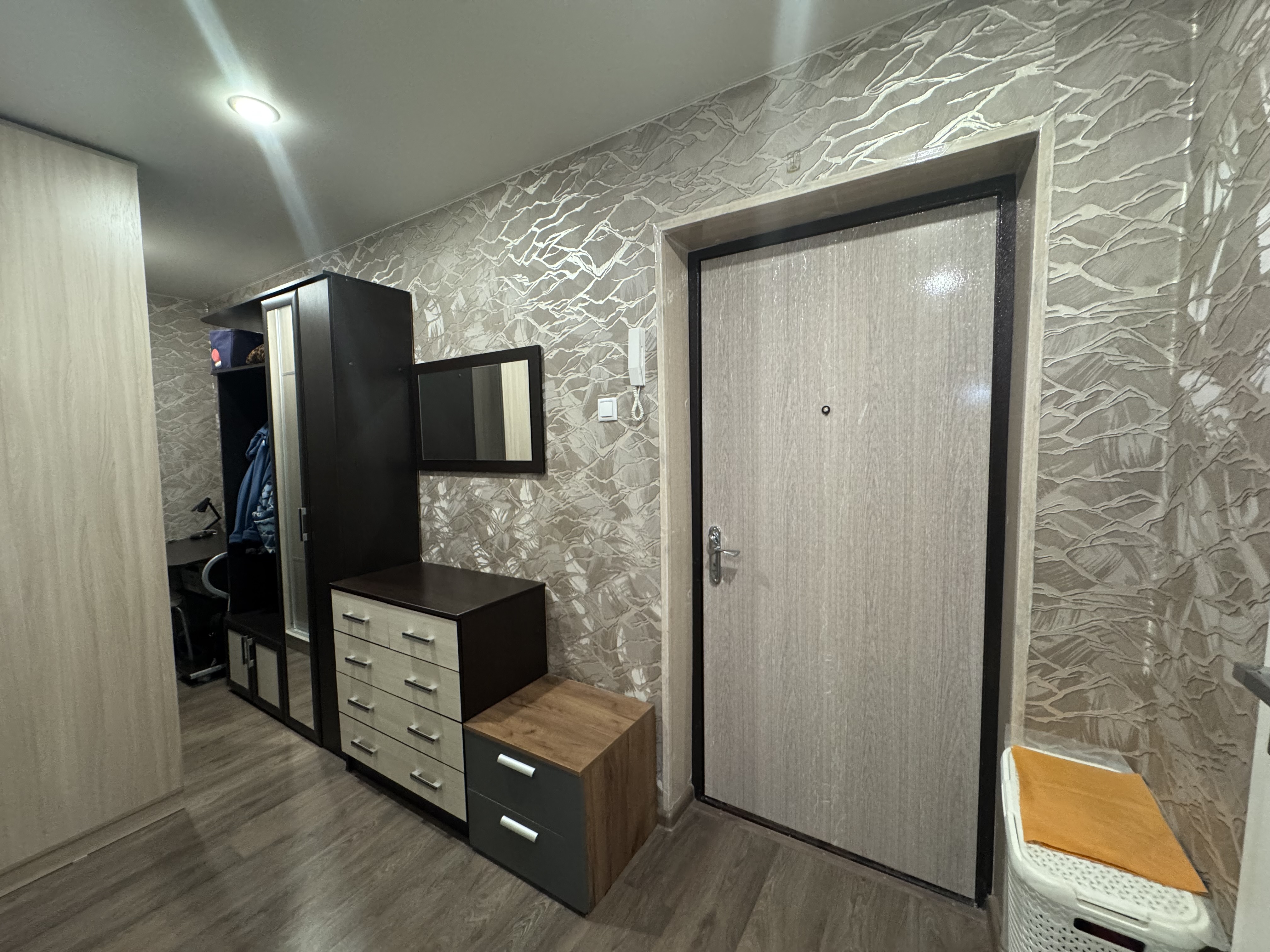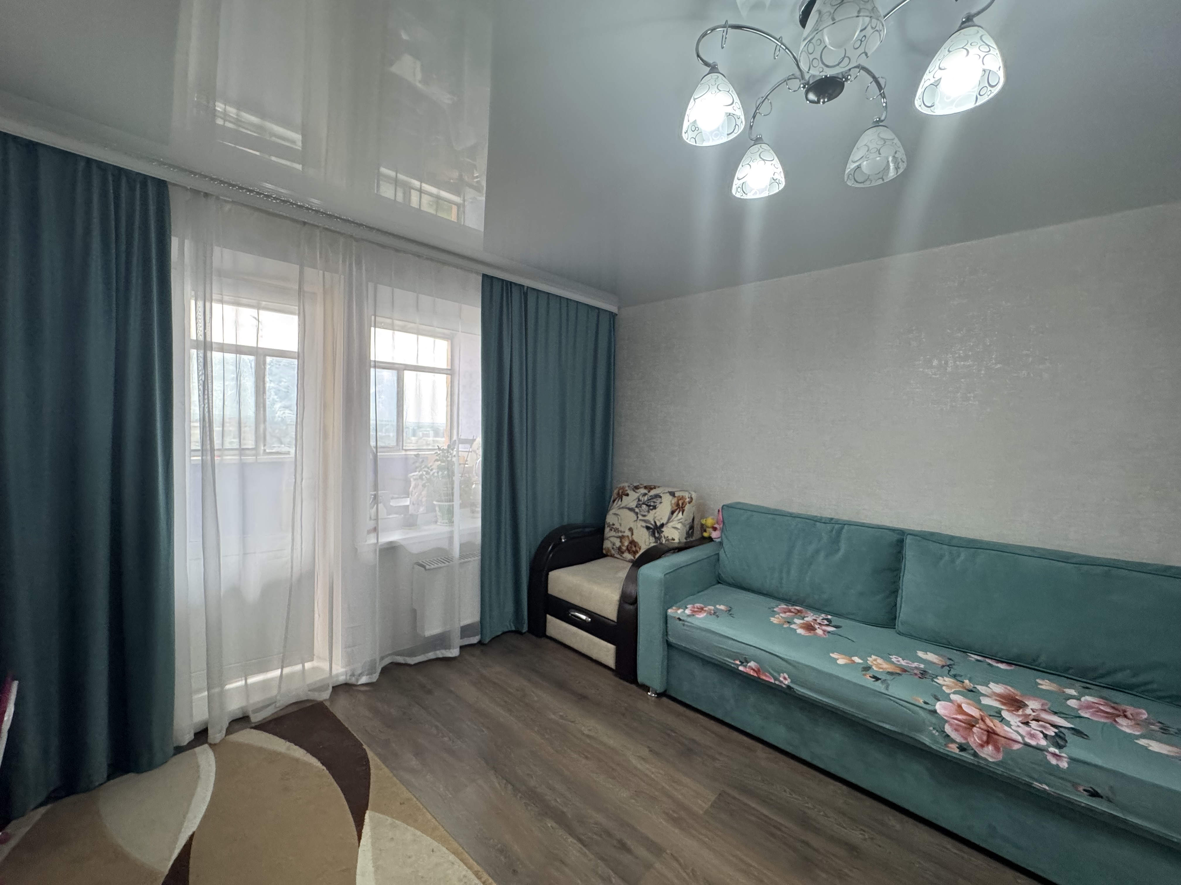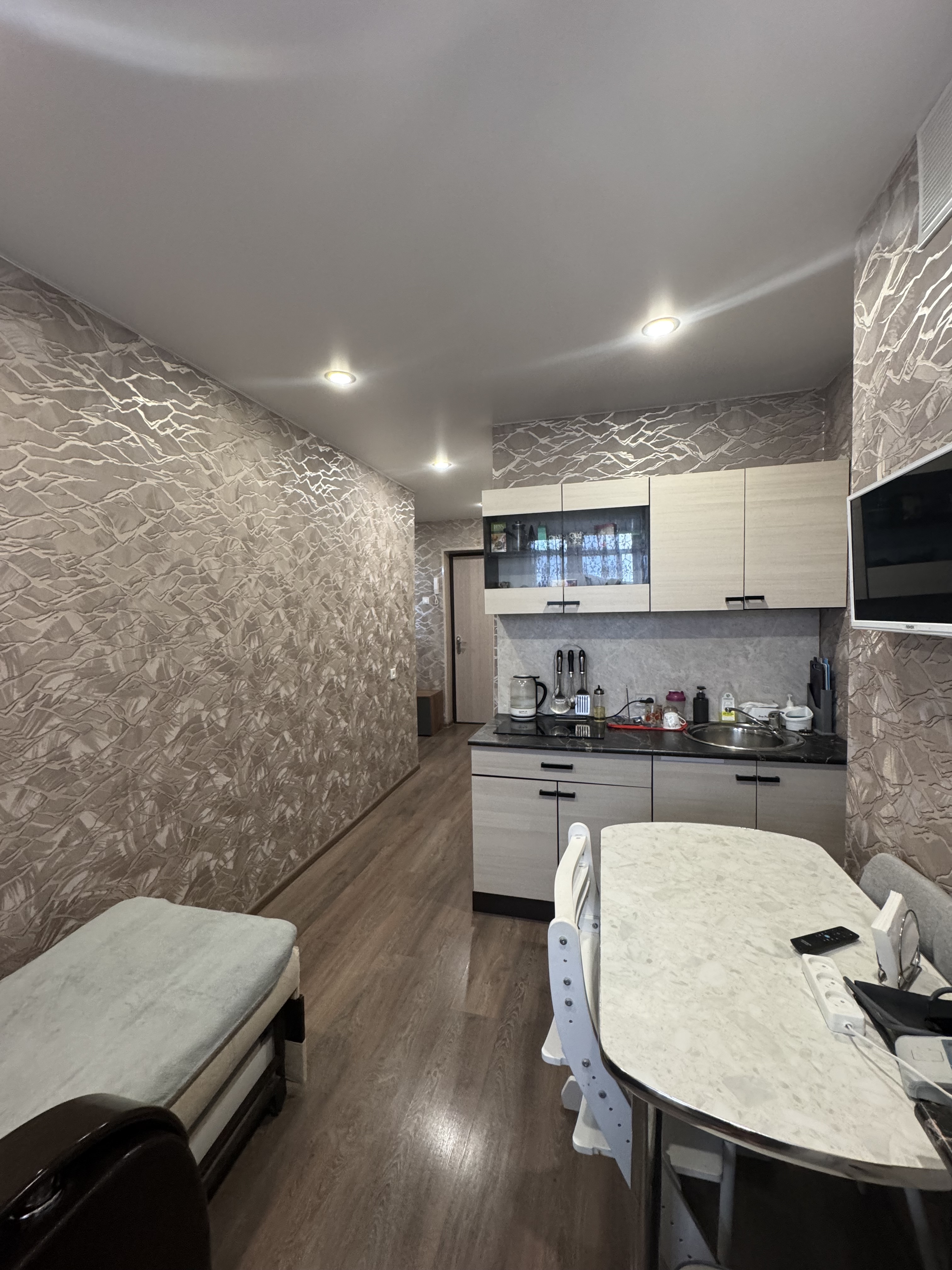 Продается уютная однокомнатная квартира с современным евро ремонтом. Просторная кухня площадью 8 м² оснащена всей необходимой техникой и стильной мебелью. Из окон открывается прекрасный вид на город, что обеспечивает хорошее естественное освещение. В квартире раздельный санузел, оформленный в светлых тонах с качественной сантехникой.Квартира расположена на 14 этаже кирпичного дома 1994 года постройки. В доме есть пассажирский и грузовой лифты, а также открытая парковка во дворе. Для детей предусмотрена детская площадка. Лоджия застеклена и утеплена, создавая дополнительное пространство для отдыха.Дом находится в районе с развитой инфраструктурой, рядом находятся магазины и остановки общественного транспорта.