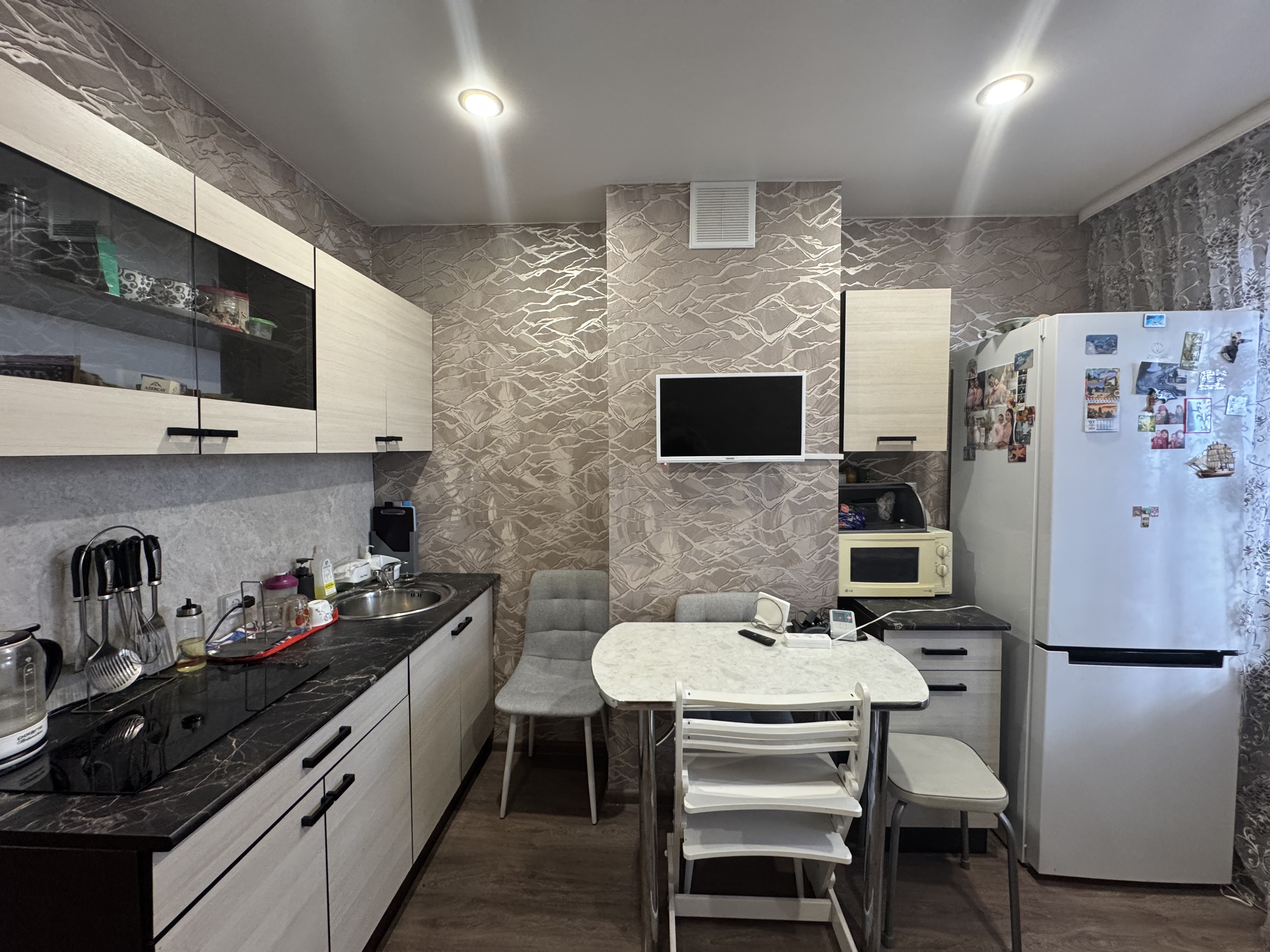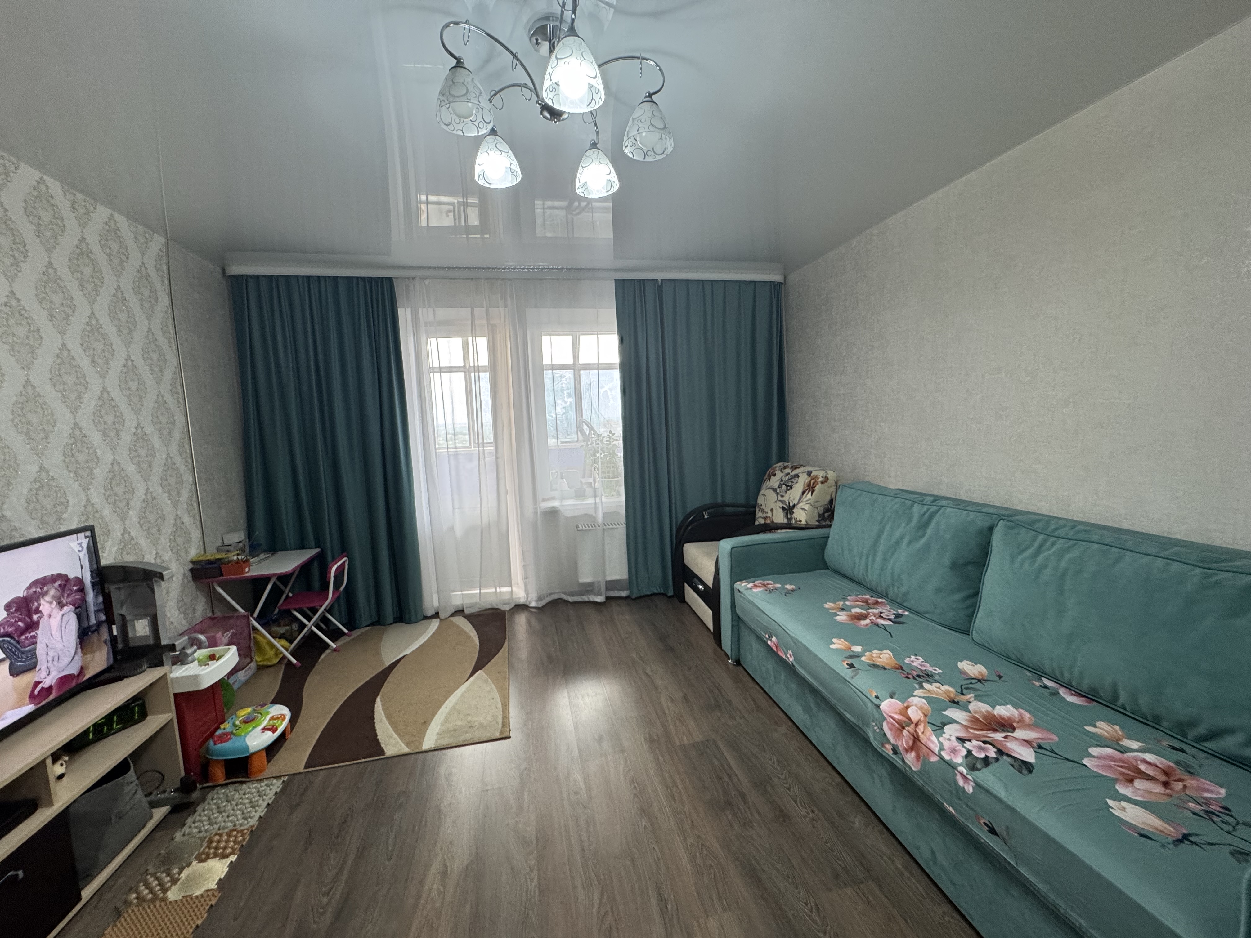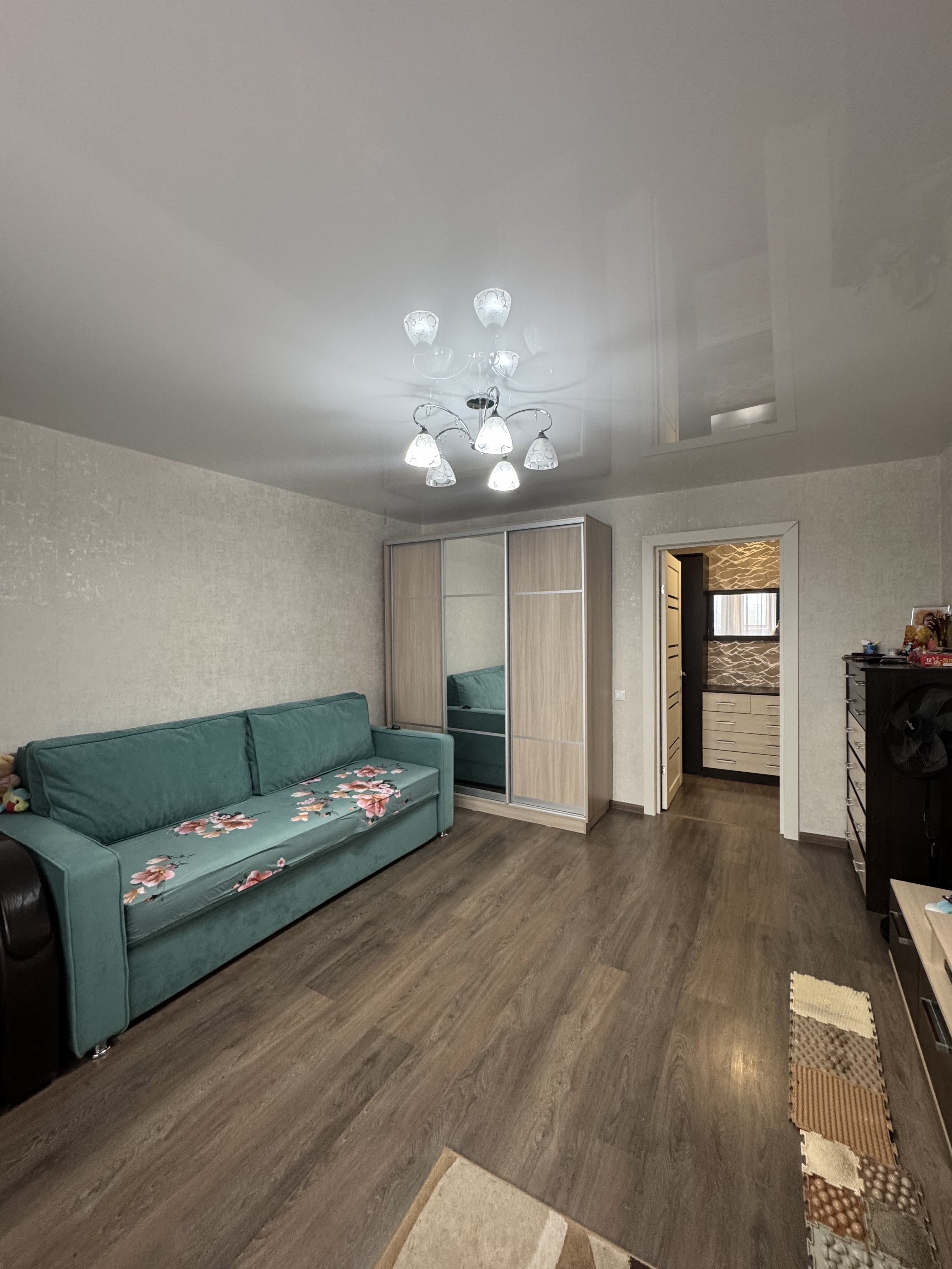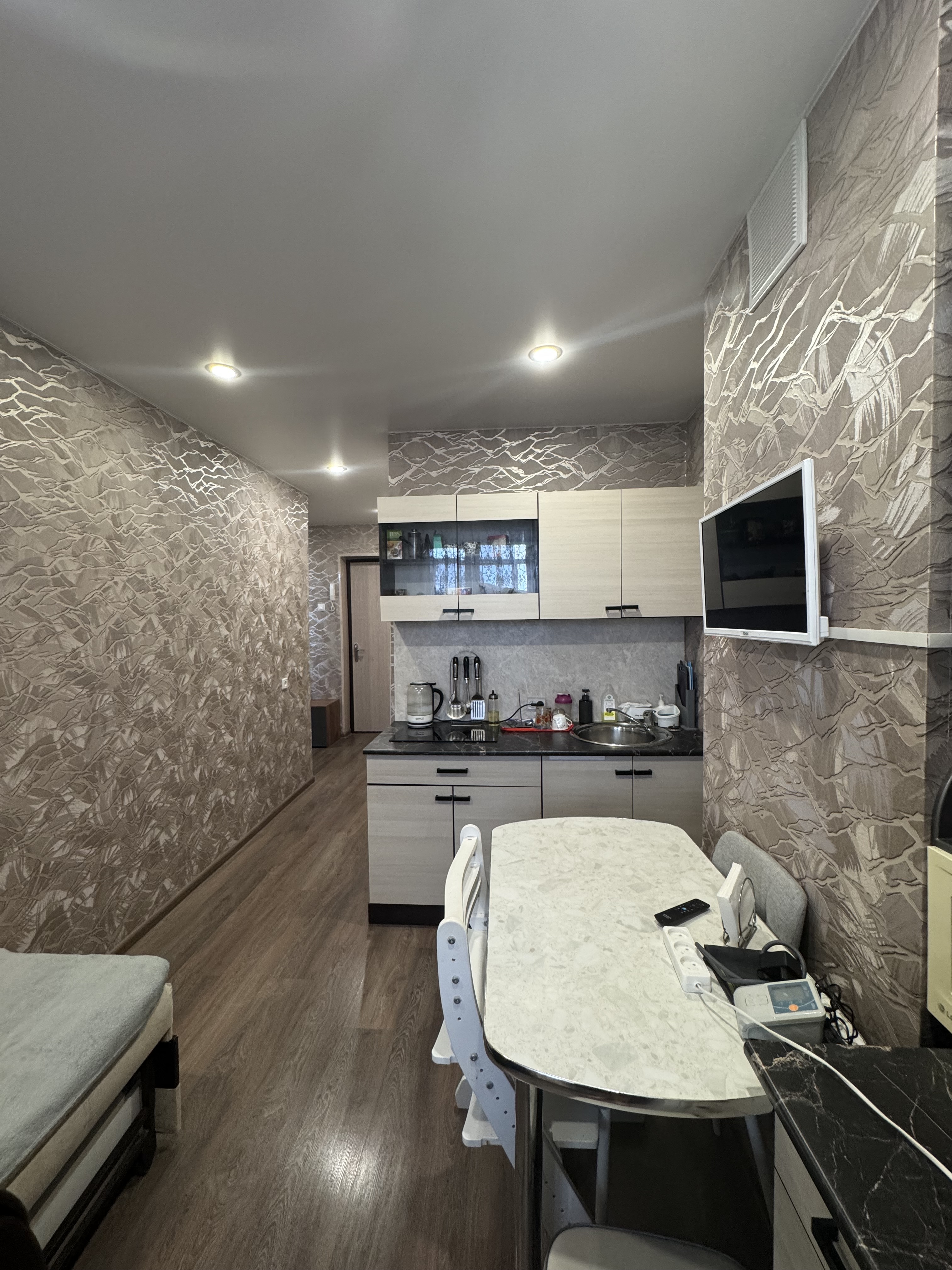 Продается уютная однокомнатная квартира с современным евро ремонтом. Просторная кухня площадью 8 м² оснащена всей необходимой техникой и стильной мебелью. Из окон открывается прекрасный вид на город, что обеспечивает хорошее естественное освещение. В квартире раздельный санузел, оформленный в светлых тонах с качественной сантехникой.Квартира расположена на 14 этаже кирпичного дома 1994 года постройки. В доме есть пассажирский и грузовой лифты, а также открытая парковка во дворе. Для детей предусмотрена детская площадка. Лоджия застеклена и утеплена, создавая дополнительное пространство для отдыха.Дом находится в районе с развитой инфраструктурой, рядом находятся магазины и остановки общественного транспорта.