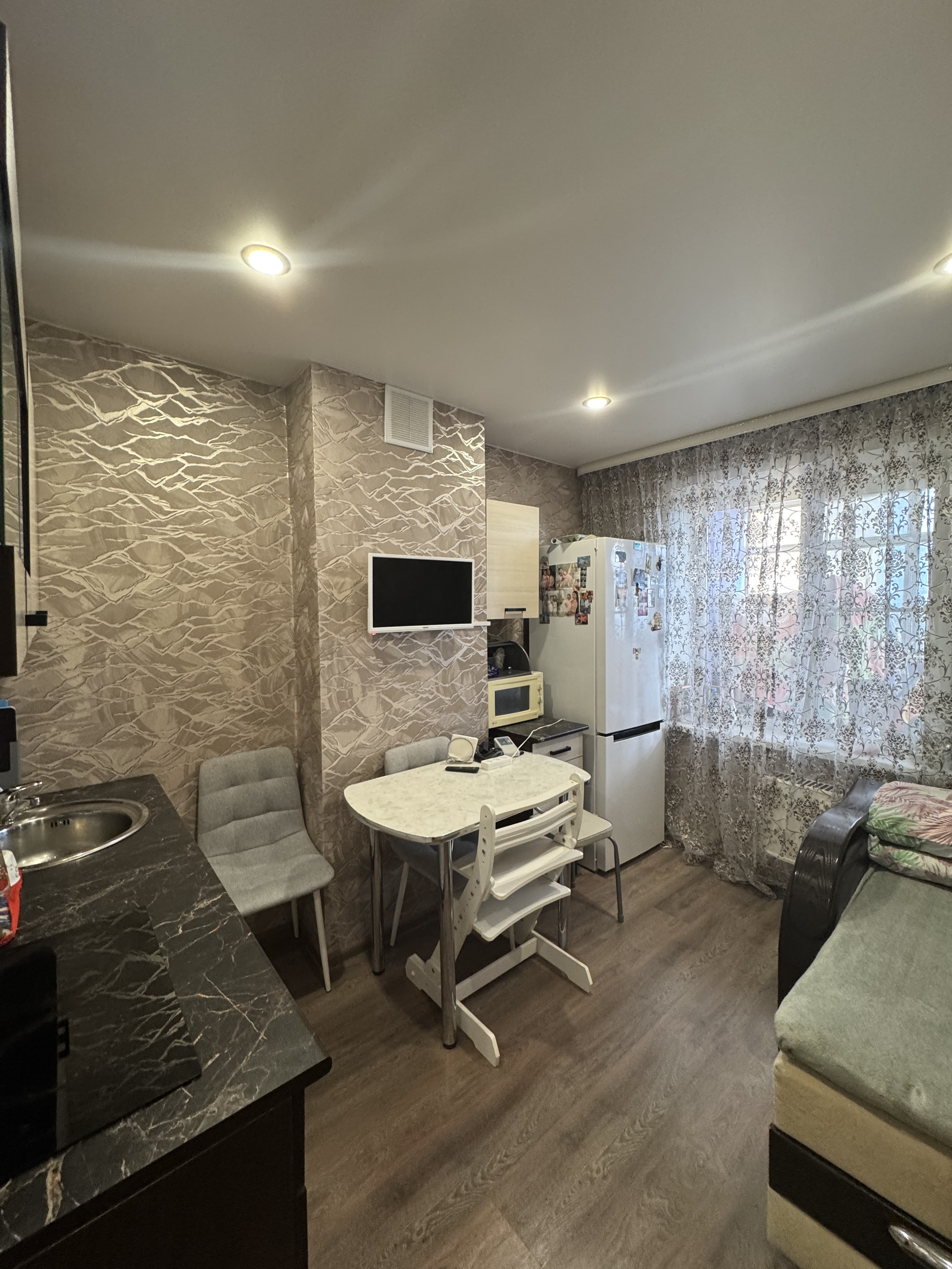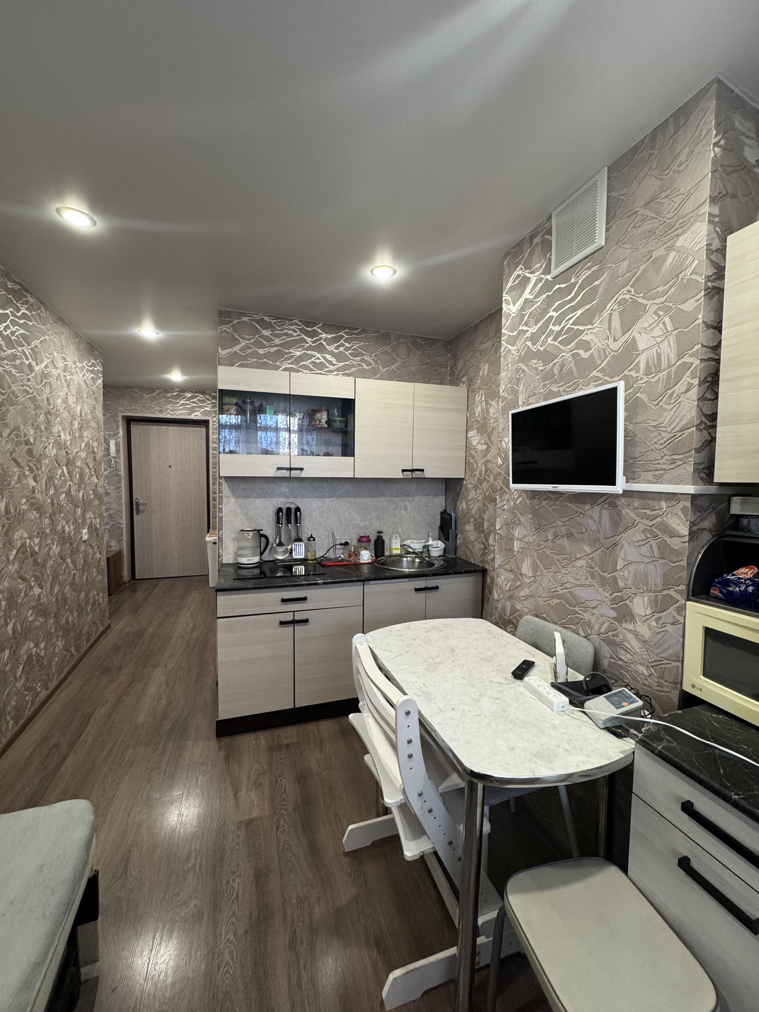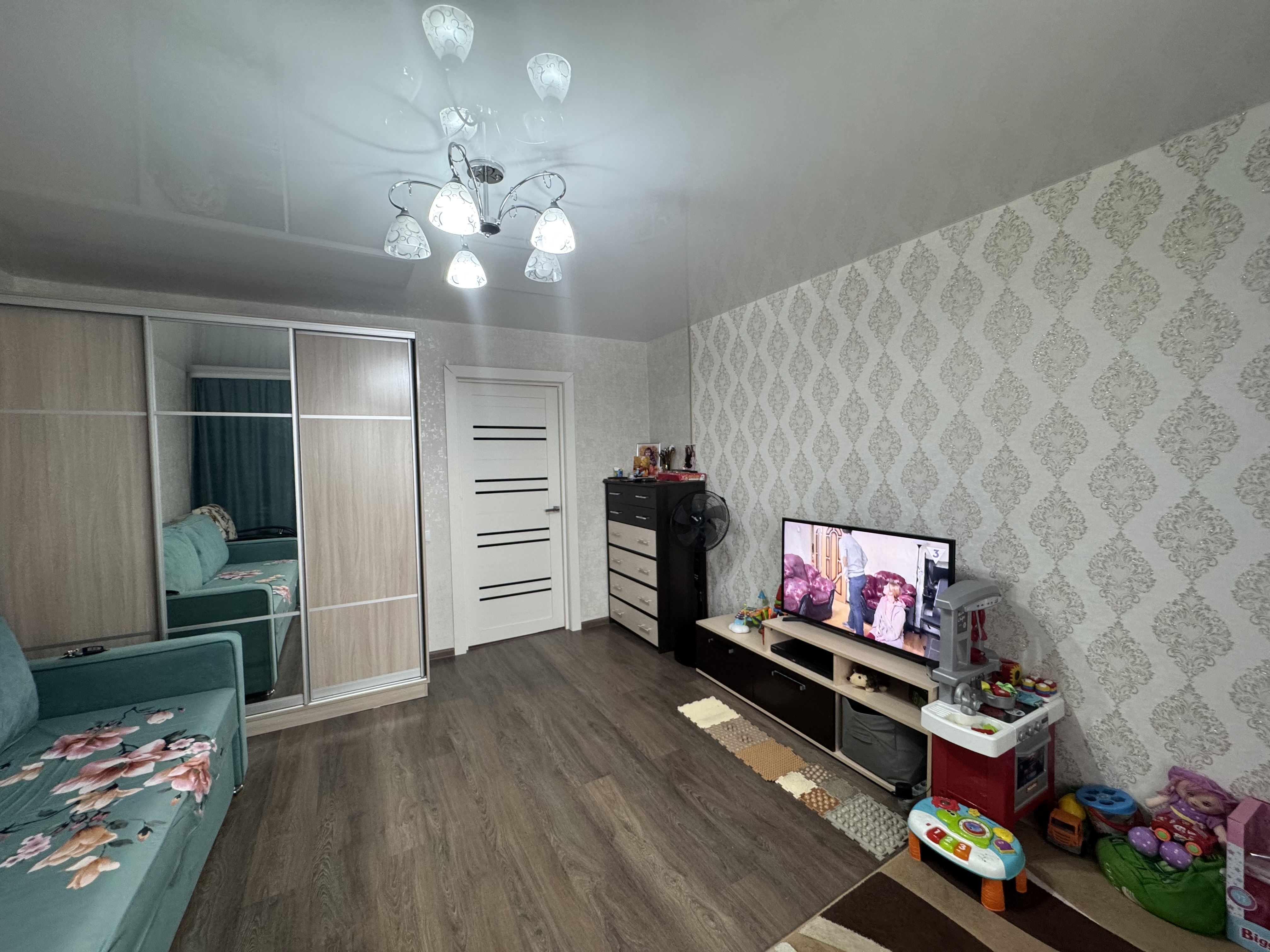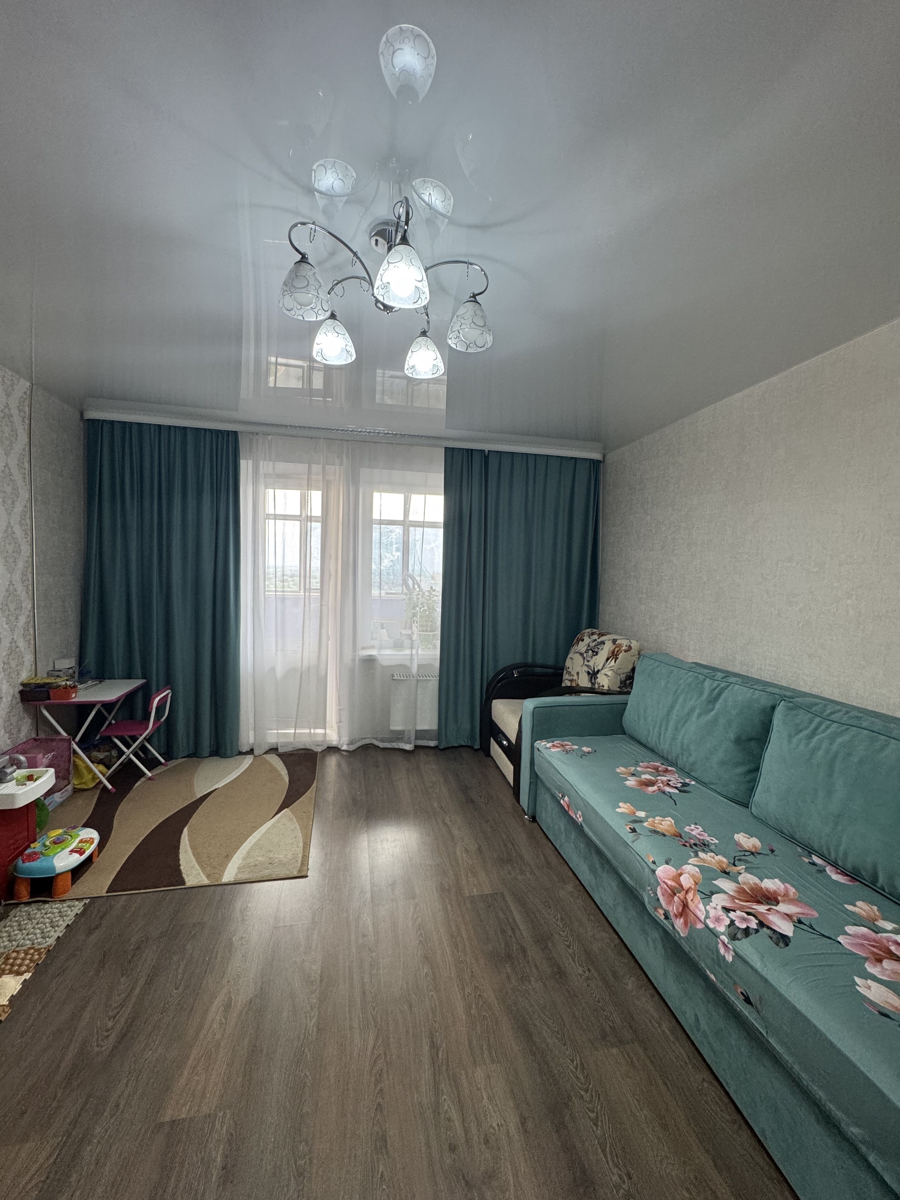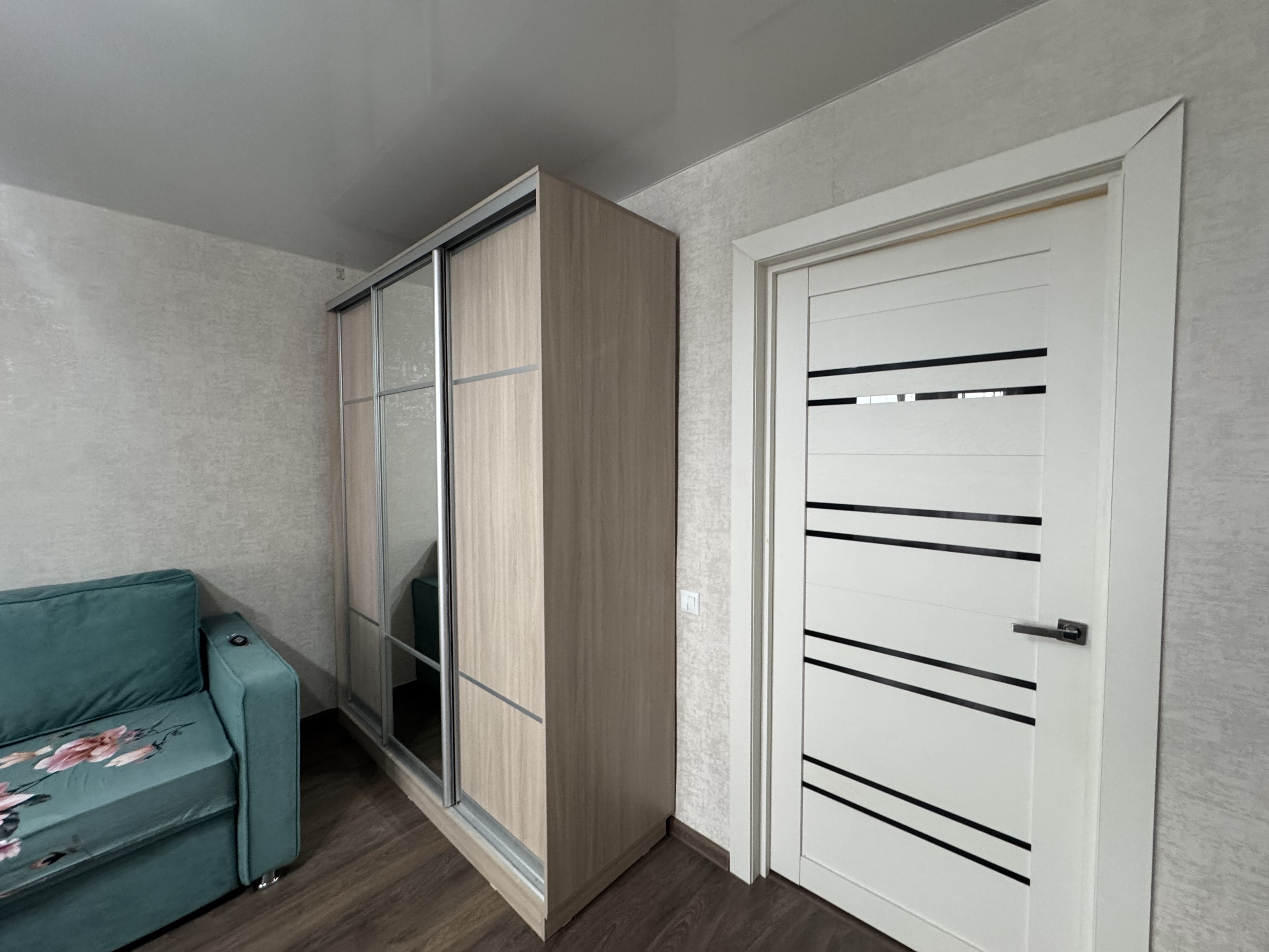 Продается уютная однокомнатная квартира с современным евро ремонтом. Просторная кухня площадью 8 м² оснащена всей необходимой техникой и стильной мебелью. Из окон открывается прекрасный вид на город, что обеспечивает хорошее естественное освещение. В квартире раздельный санузел, оформленный в светлых тонах с качественной сантехникой.Квартира расположена на 14 этаже кирпичного дома 1994 года постройки. В доме есть пассажирский и грузовой лифты, а также открытая парковка во дворе. Для детей предусмотрена детская площадка. Лоджия застеклена и утеплена, создавая дополнительное пространство для отдыха.Дом находится в районе с развитой инфраструктурой, рядом находятся магазины и остановки общественного транспорта.