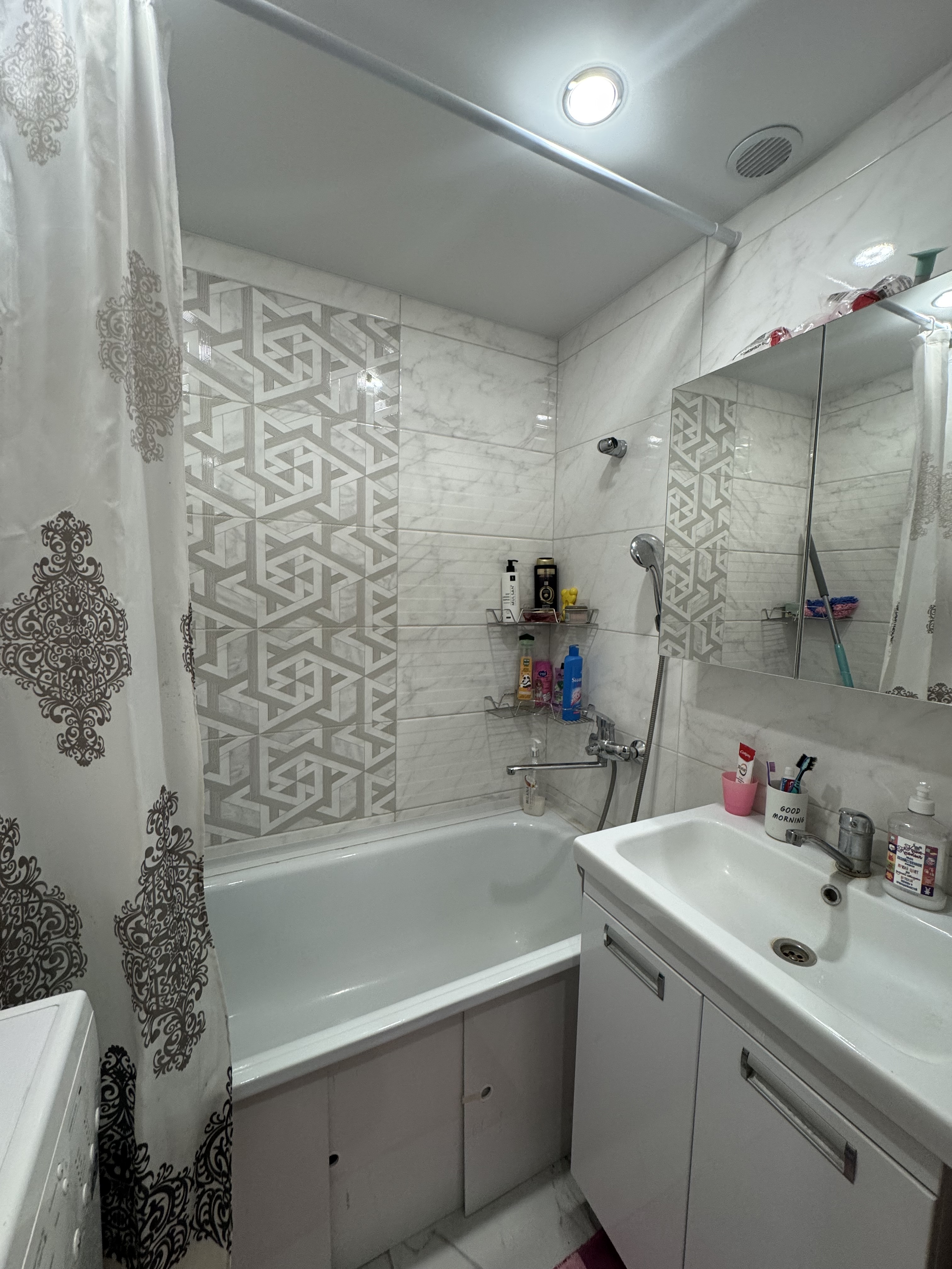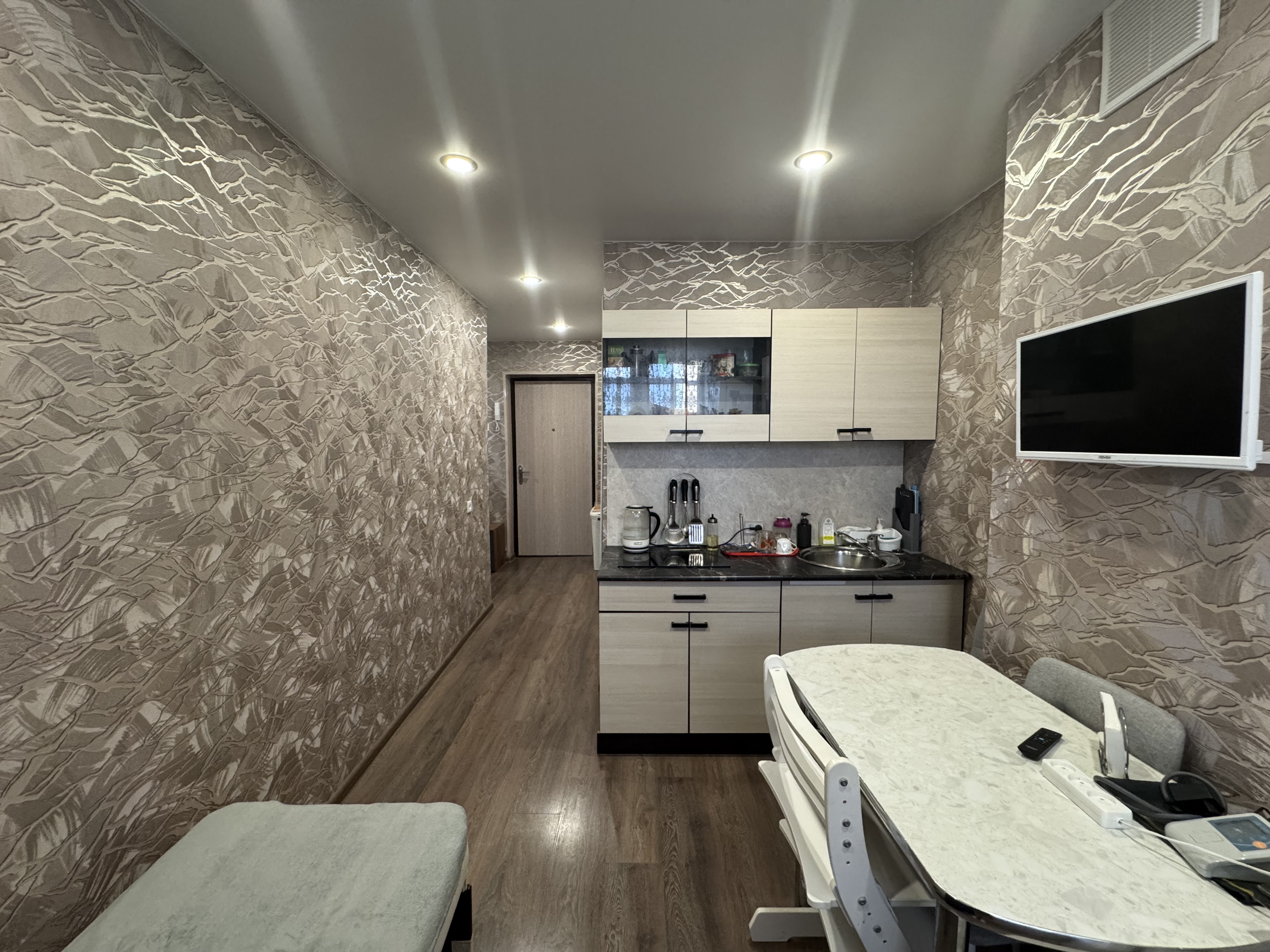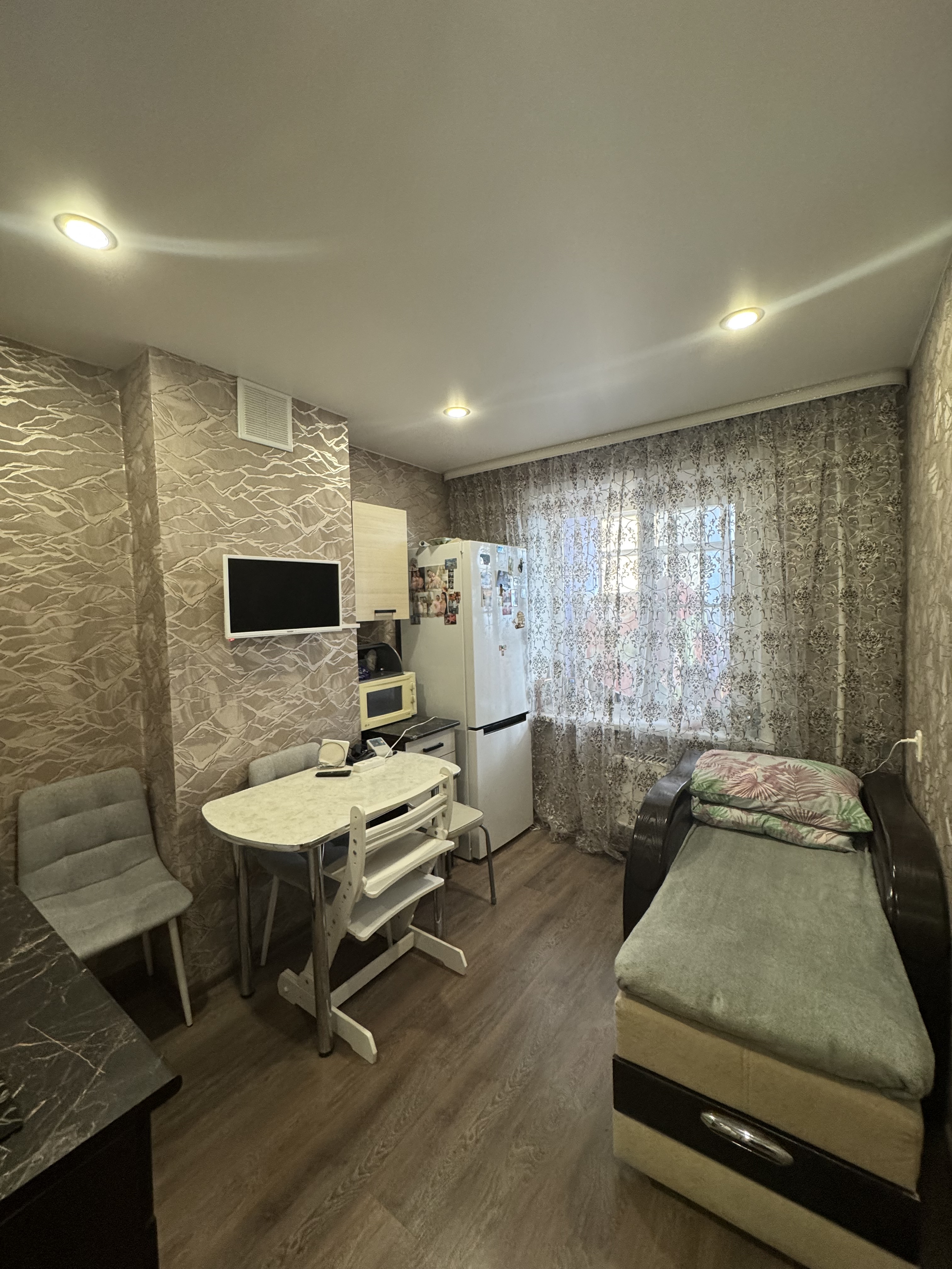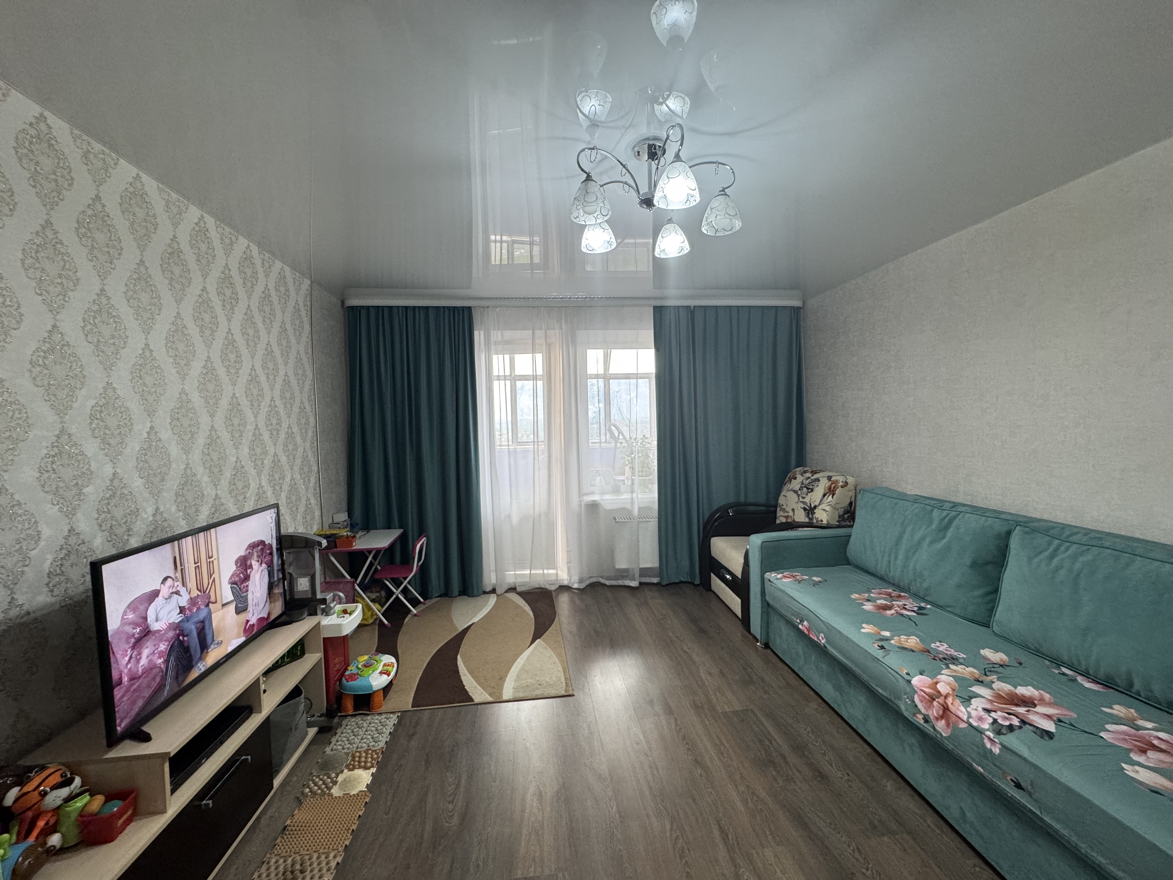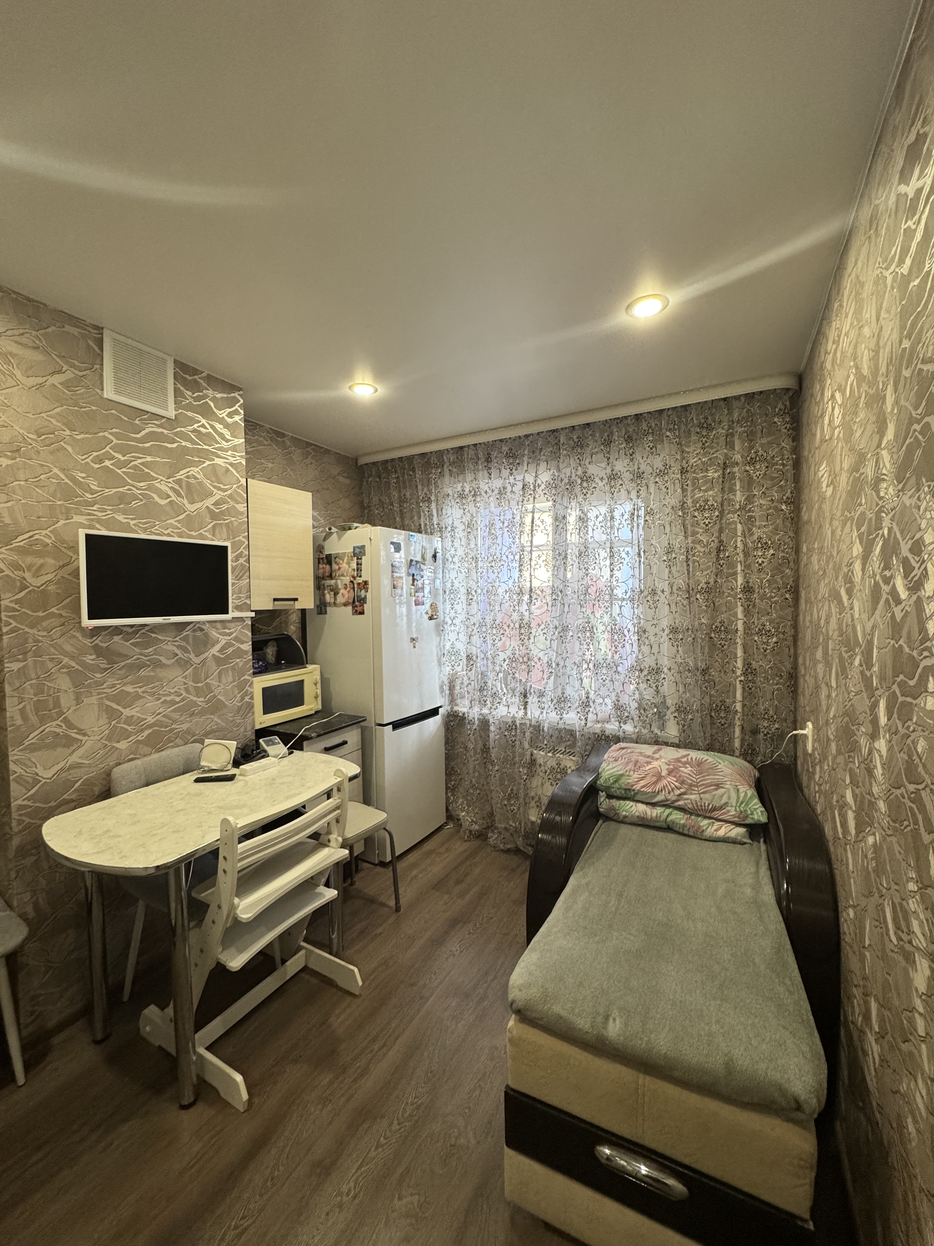 Продается уютная однокомнатная квартира с современным евро ремонтом. Просторная кухня площадью 8 м² оснащена всей необходимой техникой и стильной мебелью. Из окон открывается прекрасный вид на город, что обеспечивает хорошее естественное освещение. В квартире раздельный санузел, оформленный в светлых тонах с качественной сантехникой.Квартира расположена на 14 этаже кирпичного дома 1994 года постройки. В доме есть пассажирский и грузовой лифты, а также открытая парковка во дворе. Для детей предусмотрена детская площадка. Лоджия застеклена и утеплена, создавая дополнительное пространство для отдыха.Дом находится в районе с развитой инфраструктурой, рядом находятся магазины и остановки общественного транспорта.