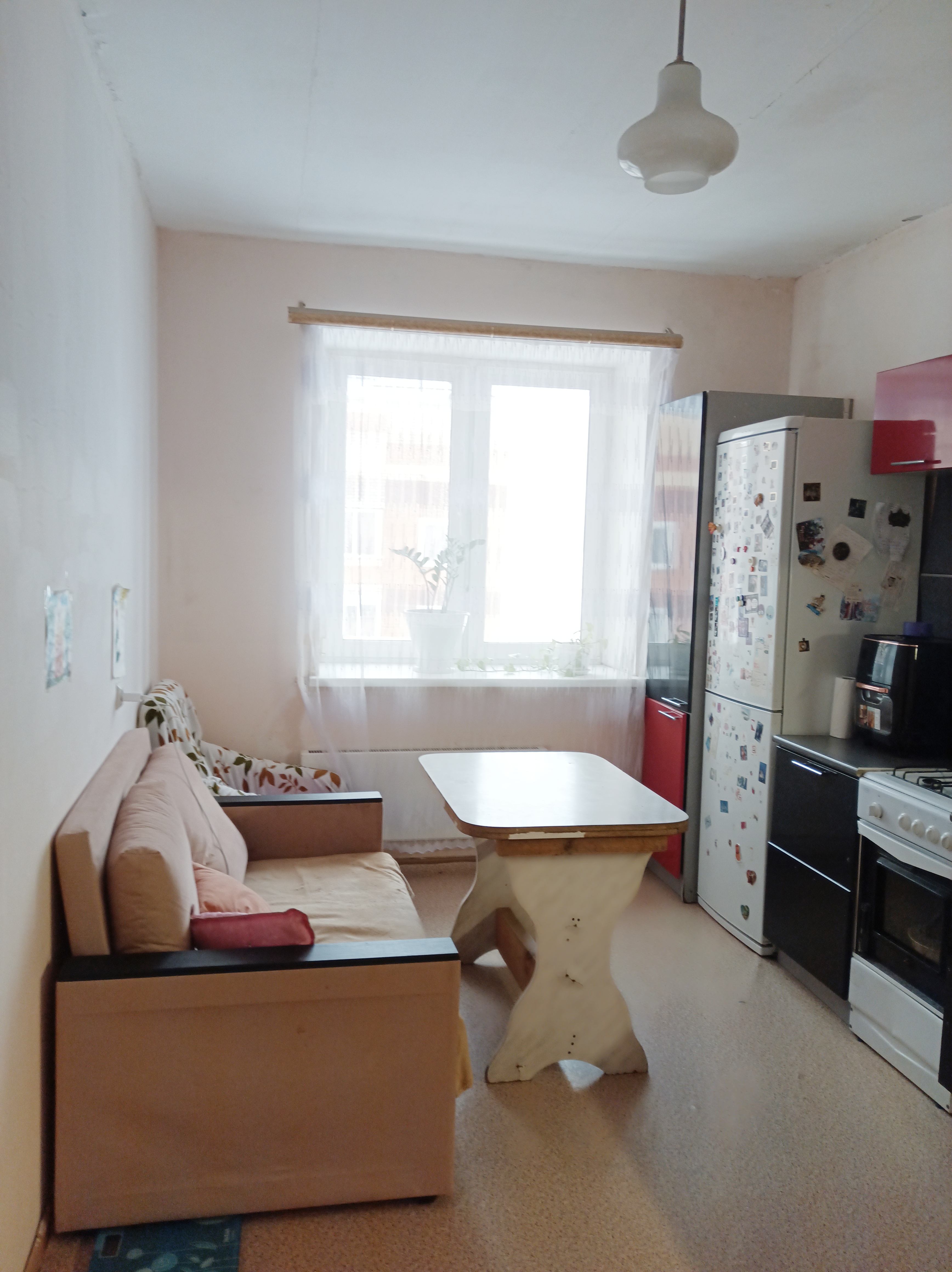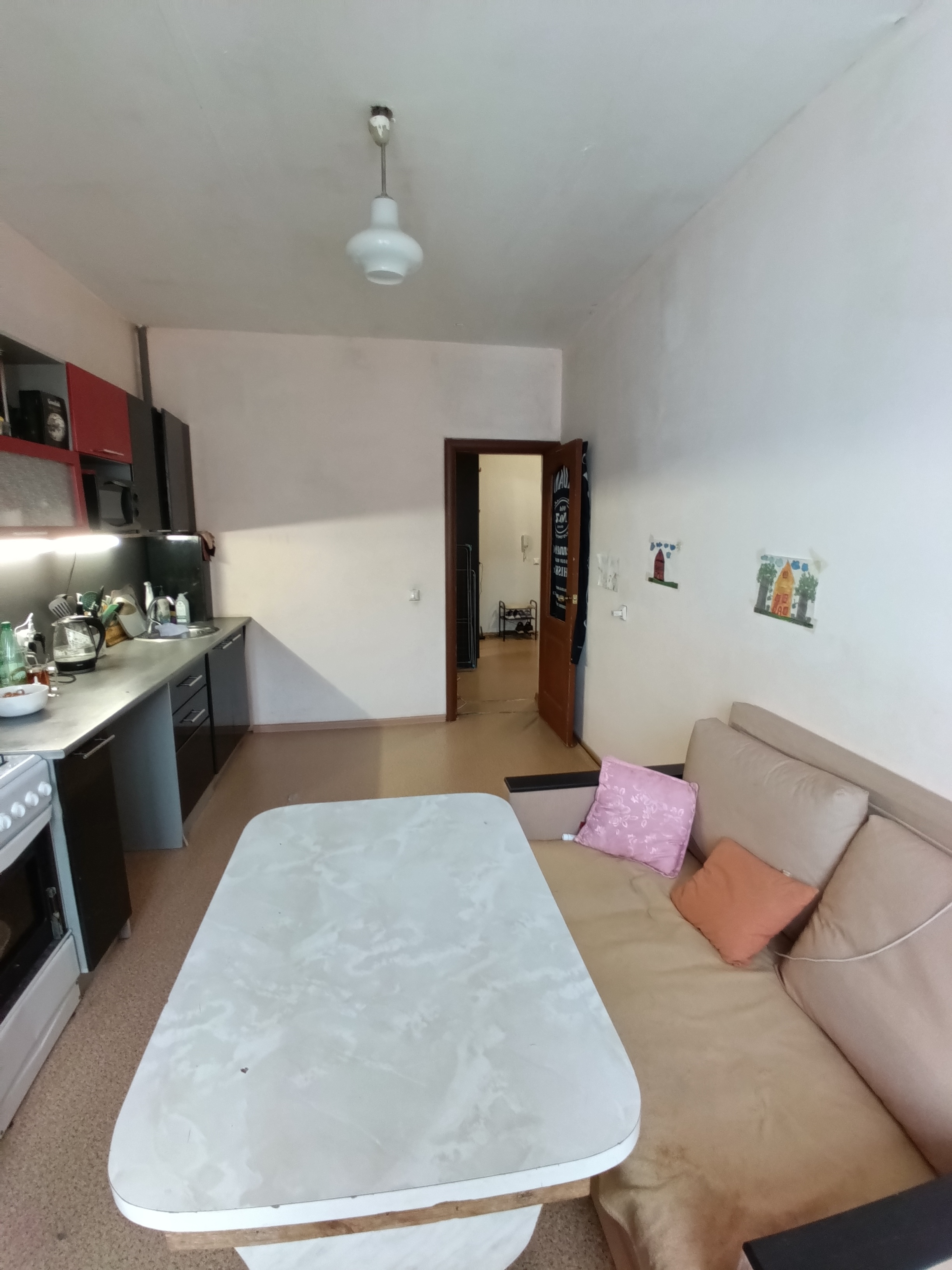 Квартира расположена на 9 этаже, есть техэтаж, теплая, не угловая. Просторная прихожая и кухня! Различные магазины прямо перед домом!