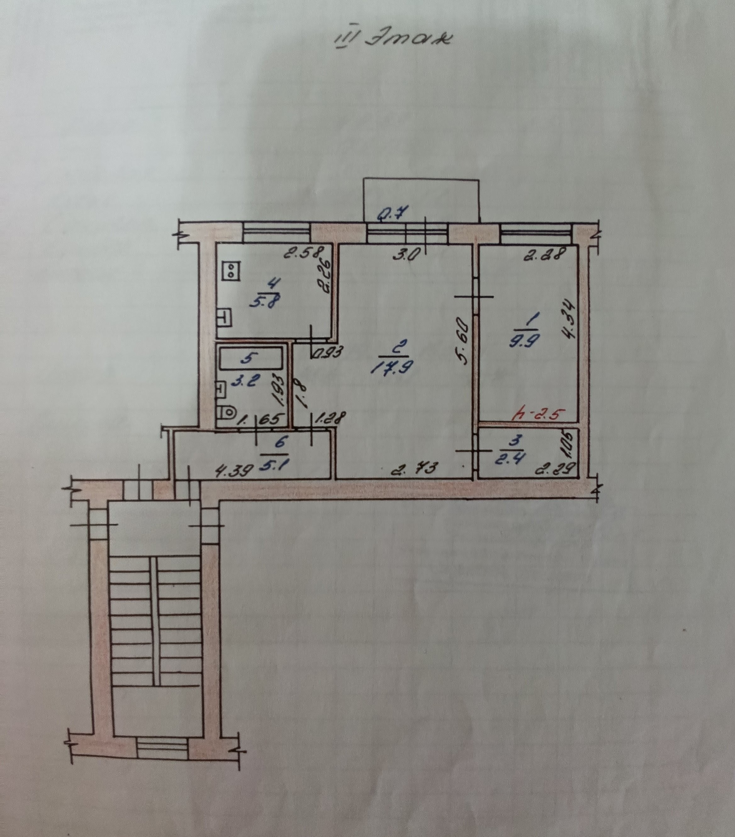 В избранное 2-комн. квартира,44,3 м2,3/4 эт
