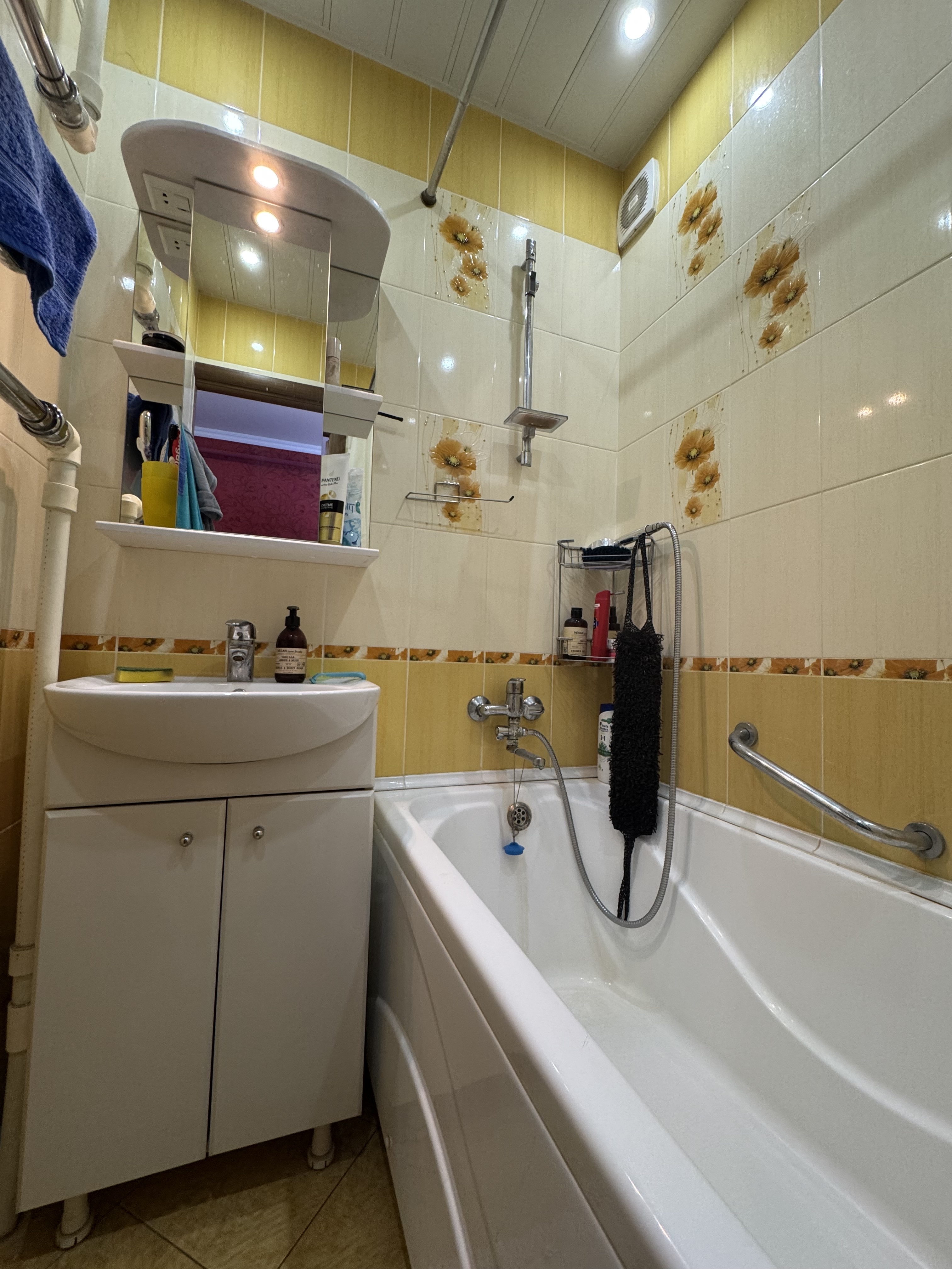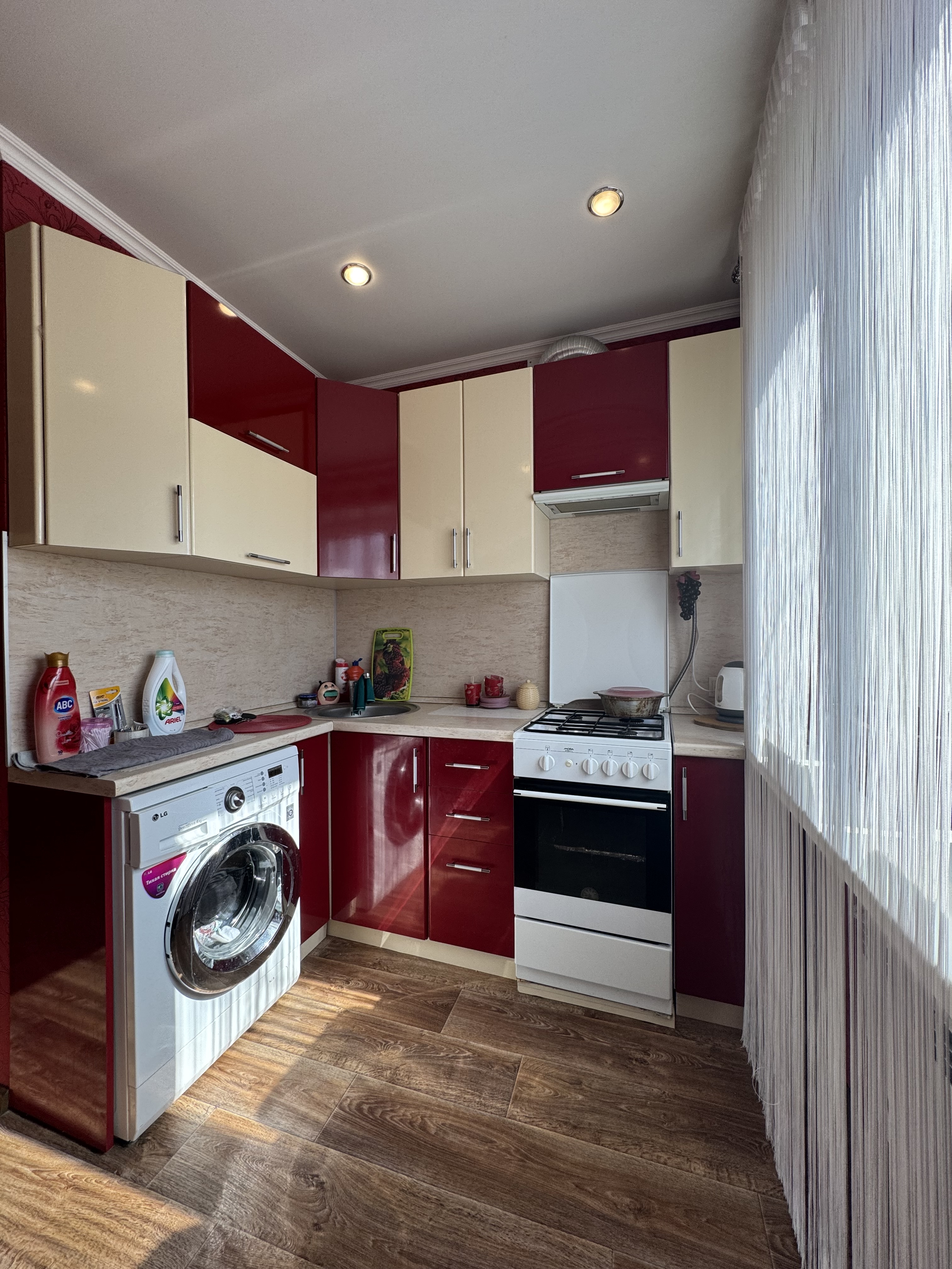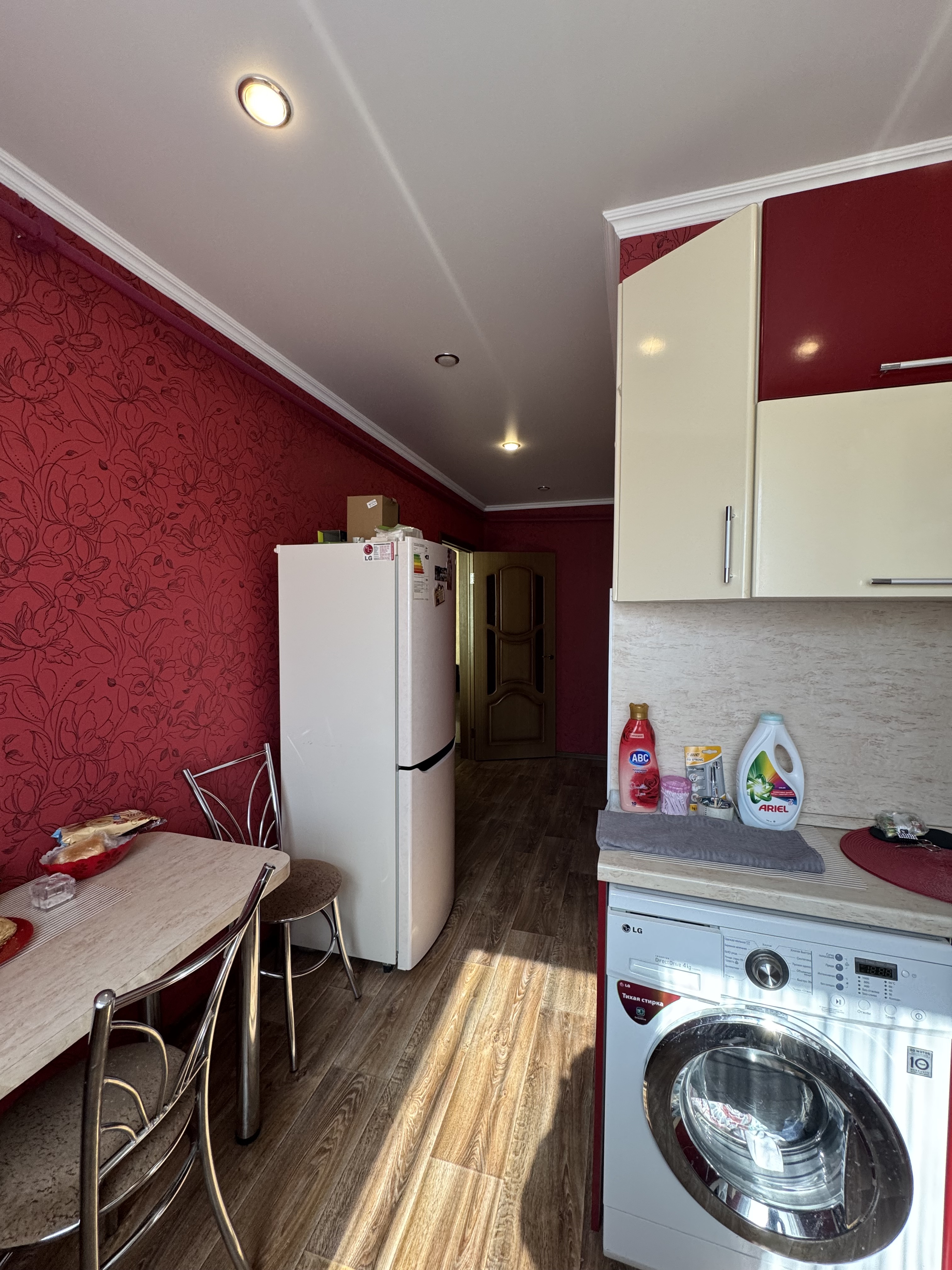 Просторная кухня оборудована современной техникой, включая холодильник и стиральную машину. Из окон открывается вид на зеленые насаждения , что обеспечивает хорошее естественное освещение и тишину. В квартире совмещенный санузел с качественной отделкой.Дом панельного типа построен в 1993 году, оснащен пассажирским лифтом. Во дворе есть детская и спортивная площадки, а также открытая парковка. Лоджия застеклена и утеплена, создавая дополнительное пространство для отдыха.Квартира находится на первом этаже девятиэтажного здания, что удобно для семей с детьми или пожилых людей. Газоснабжение в доме обеспечивает комфортное проживание.